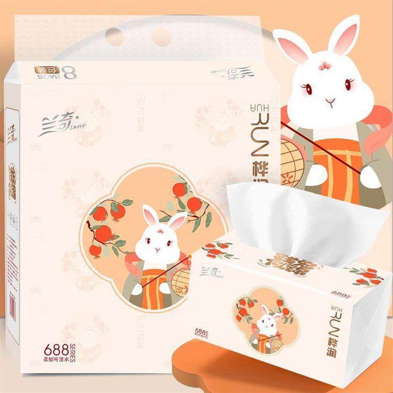 📚 特价兰奇桦润钱兔似锦688系列亲肤可湿水抽纸餐巾纸纸巾8包/提