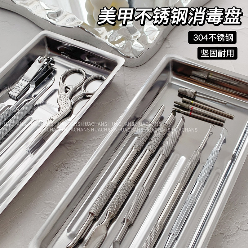 📚 美甲工具消毒托盘加厚304不锈钢牙科口腔酒精工具消毒方盘耐高温