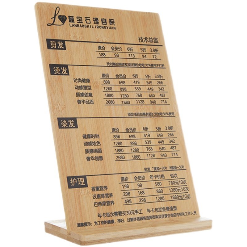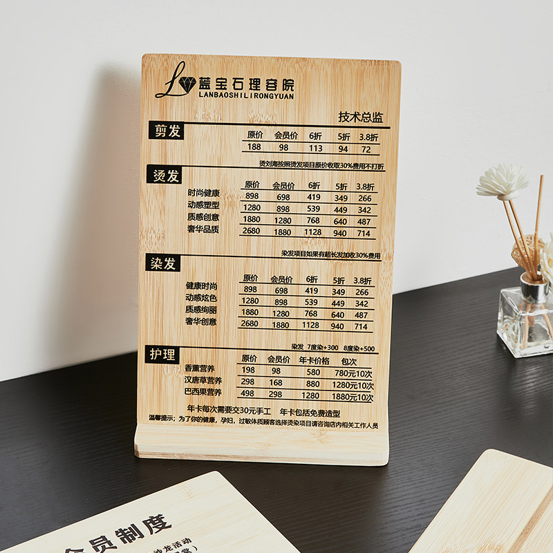 📚 会员充值牌卡定制木质价格表美容美发店价目表美甲价格表菜单木板