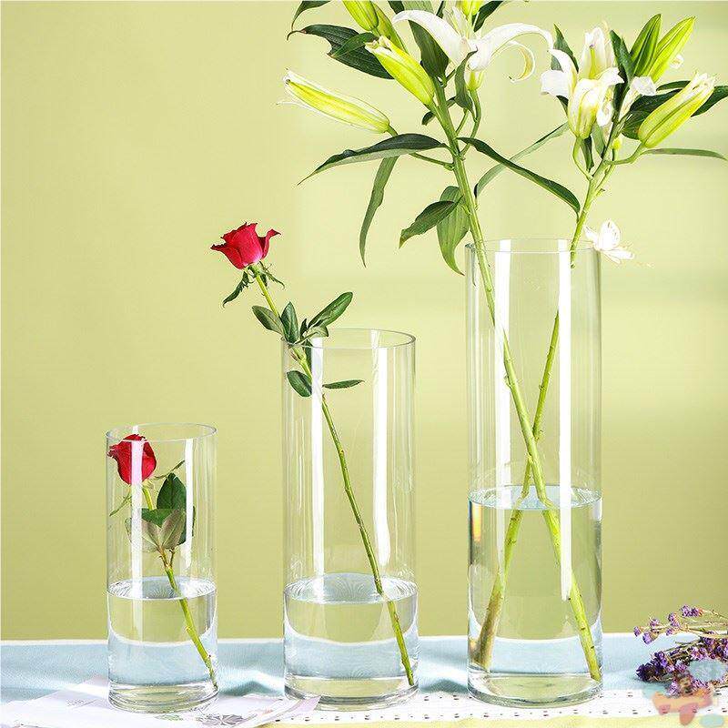 📚 直筒圆柱落地富贵竹玻璃花瓶透明圆筒高款30cm40公分50鲜花醒花桶