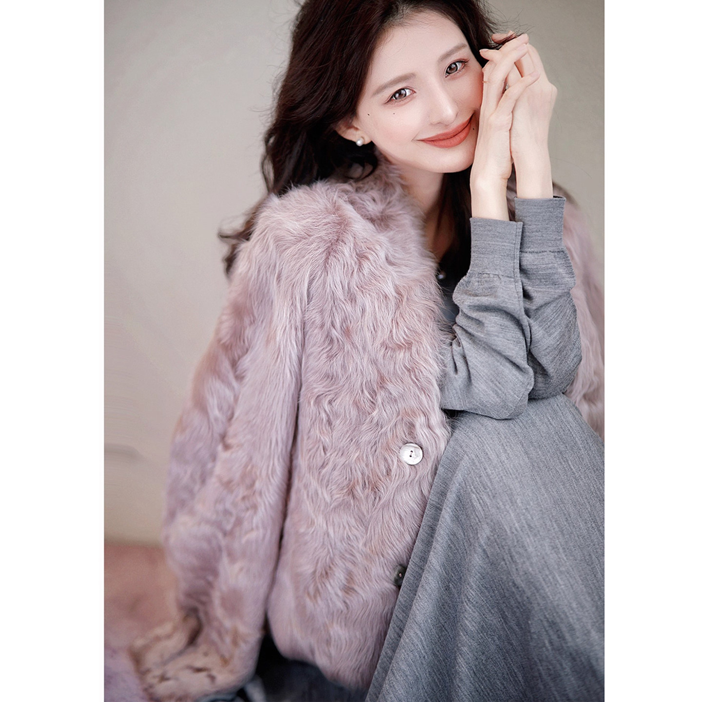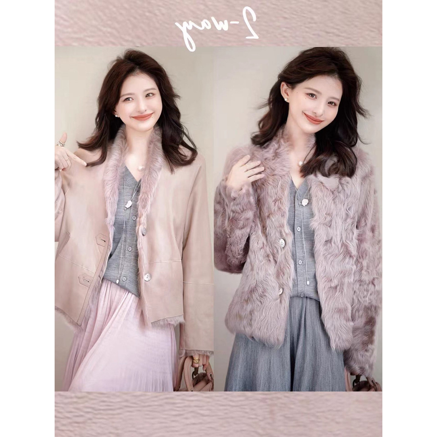 📚 小湖羊皮毛一体女款冬季新款粉色双面穿时尚气质小个短款皮草外套