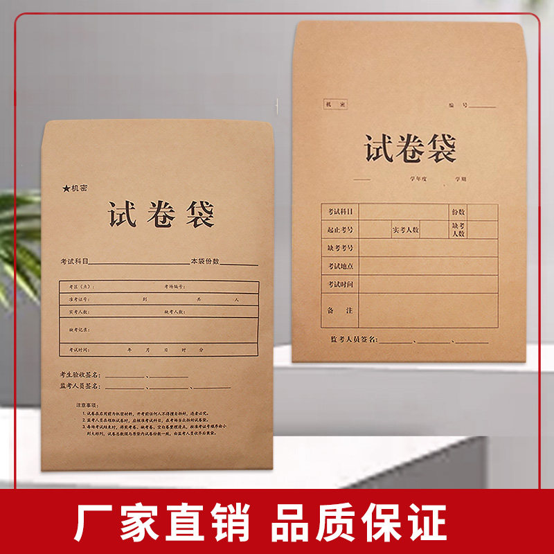 📚 试卷袋牛皮纸密封袋文件袋试题资料答题卡收纳加厚封卷包装定制双舌绝密考研职业技能美术作品档案袋支持定制