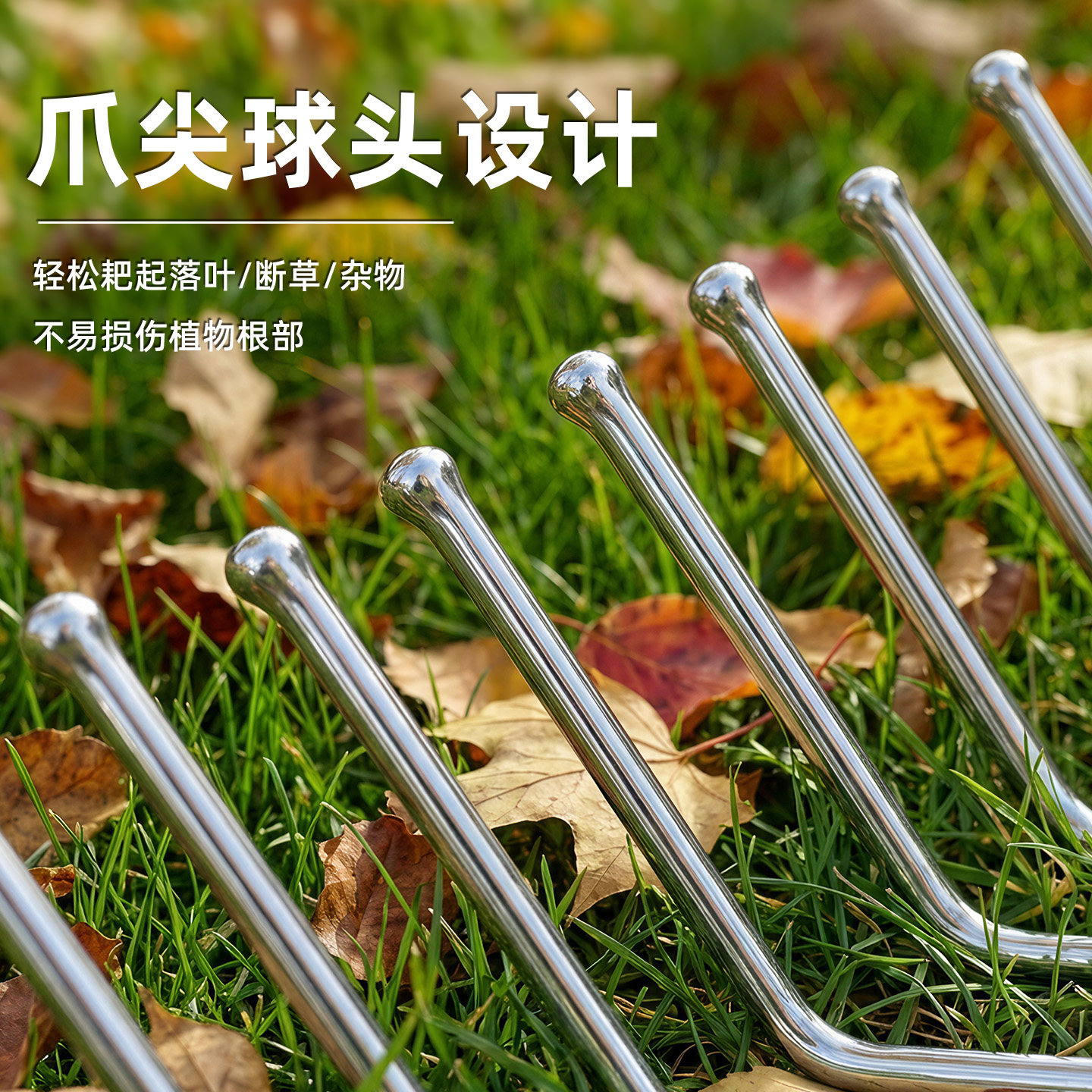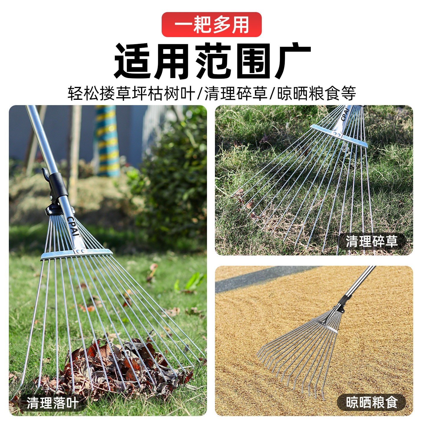 📚 不锈钢耙子搂草扒子农用扫树叶神器耙齿钉耙伸缩扒子耙草园艺工具