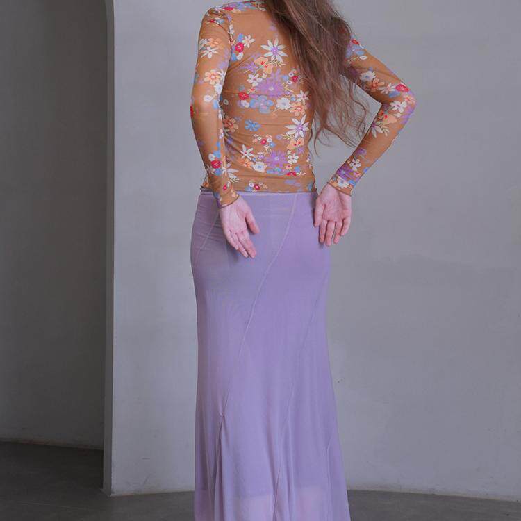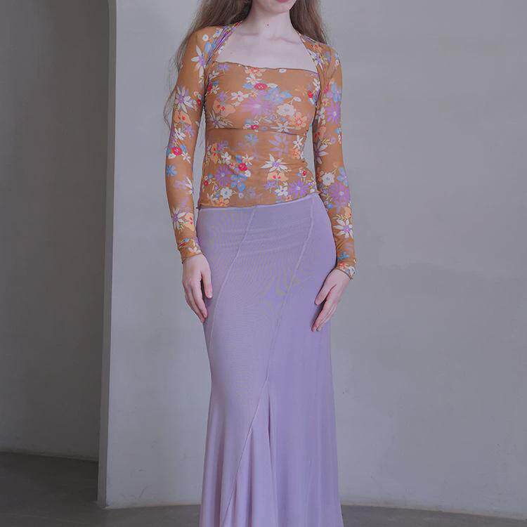📚 莫里公园 紫色优雅网纱鱼尾女 显曲线不规则弹力