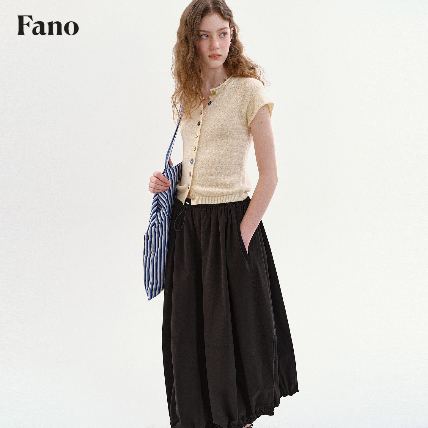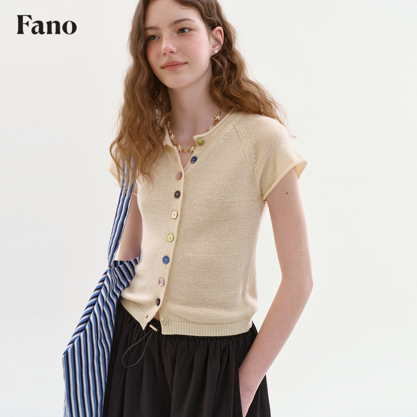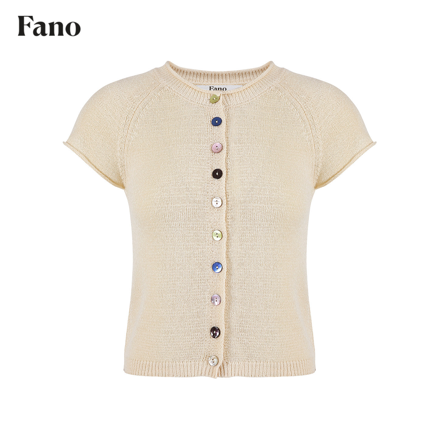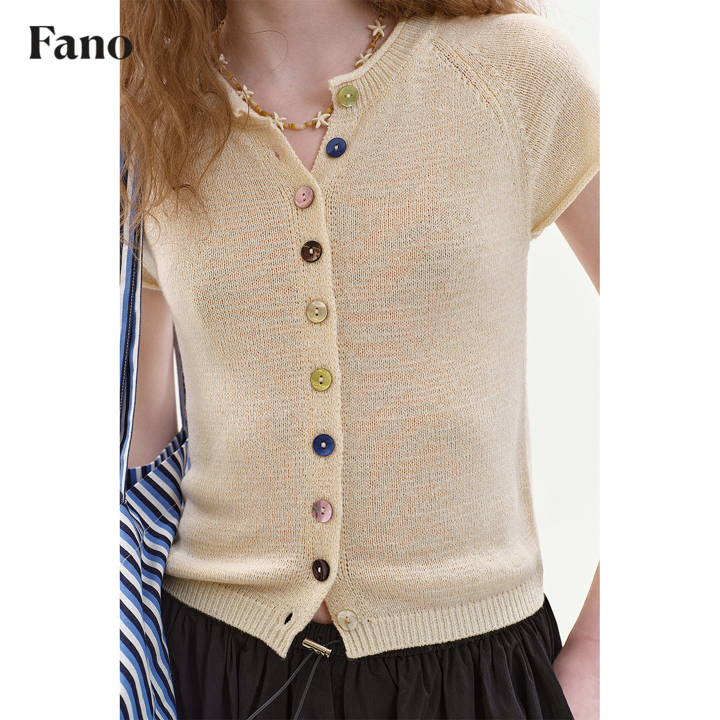 📚 范洛Fano 法式松弛风短袖针织衫女2026夏新款卷边插肩袖米色上衣