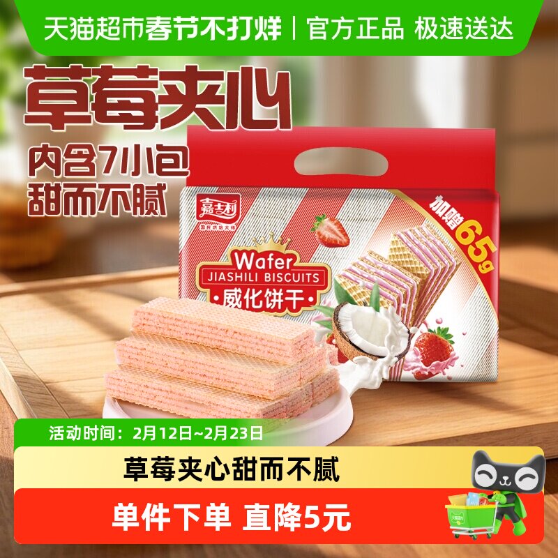 📚 嘉士利草莓味威化饼干389g+65g水果夹心休闲零食早餐下午茶