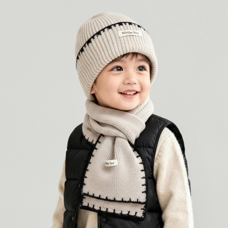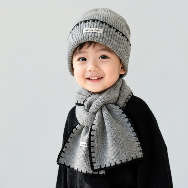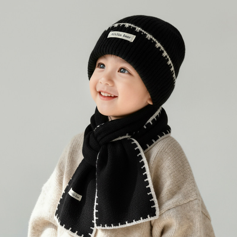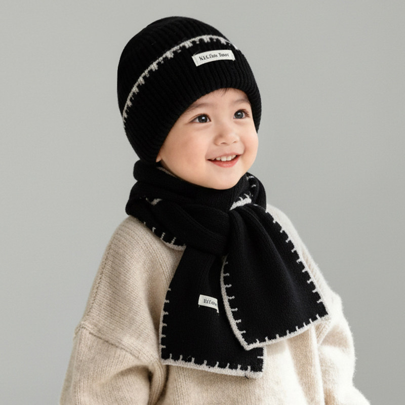 📚 儿童帽子围巾两件套秋冬季男童女童针织毛线帽护耳套头保暖帽防风