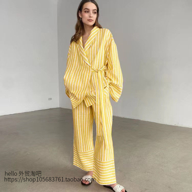 📚 欧美风条纹系带上衣长裤套装 Striped lace up top and pants set