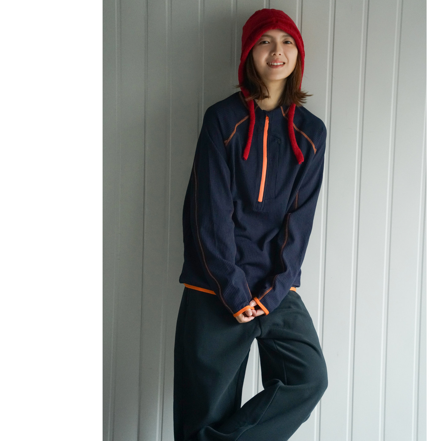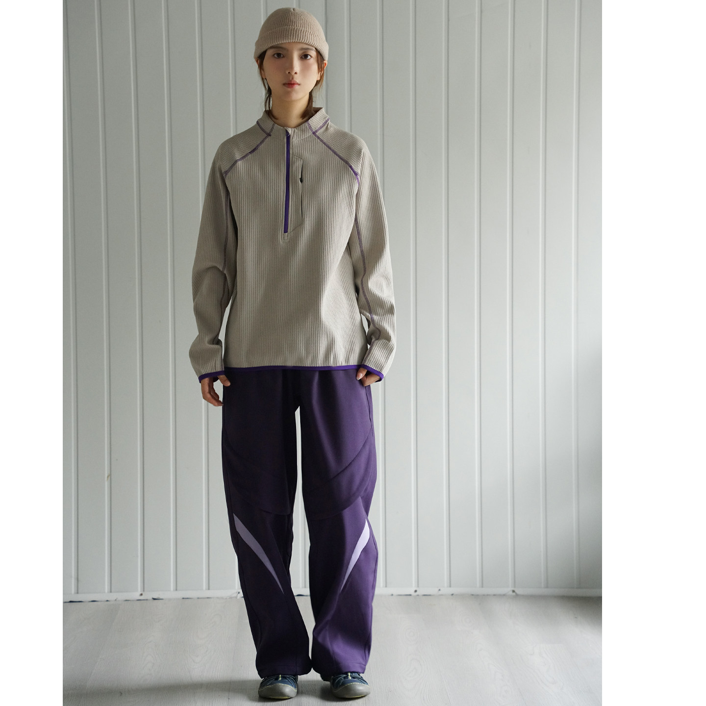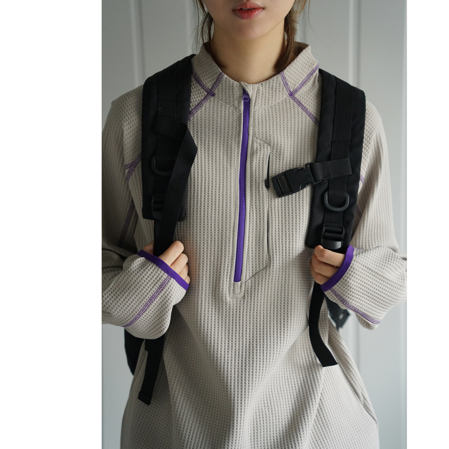 📚 NBN 辑明线撞色半开领华夫格薄卫衣户外山系春款徒步上衣男女潮牌