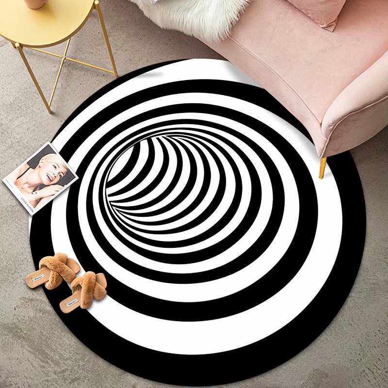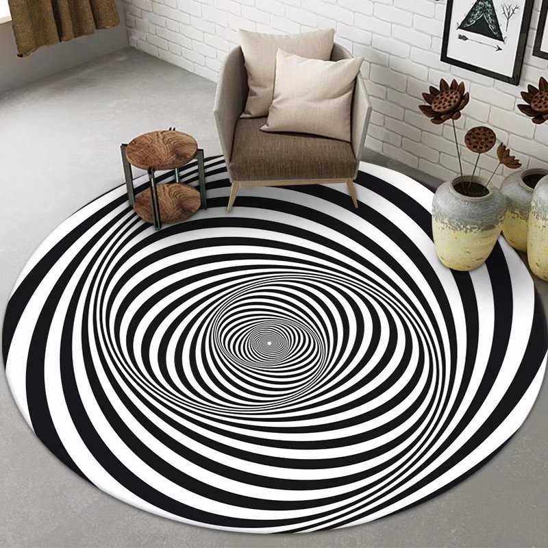 📚 圆形地毯黑白眩晕电脑椅转椅垫吊篮卧室客厅儿童房地垫健身瑜伽垫