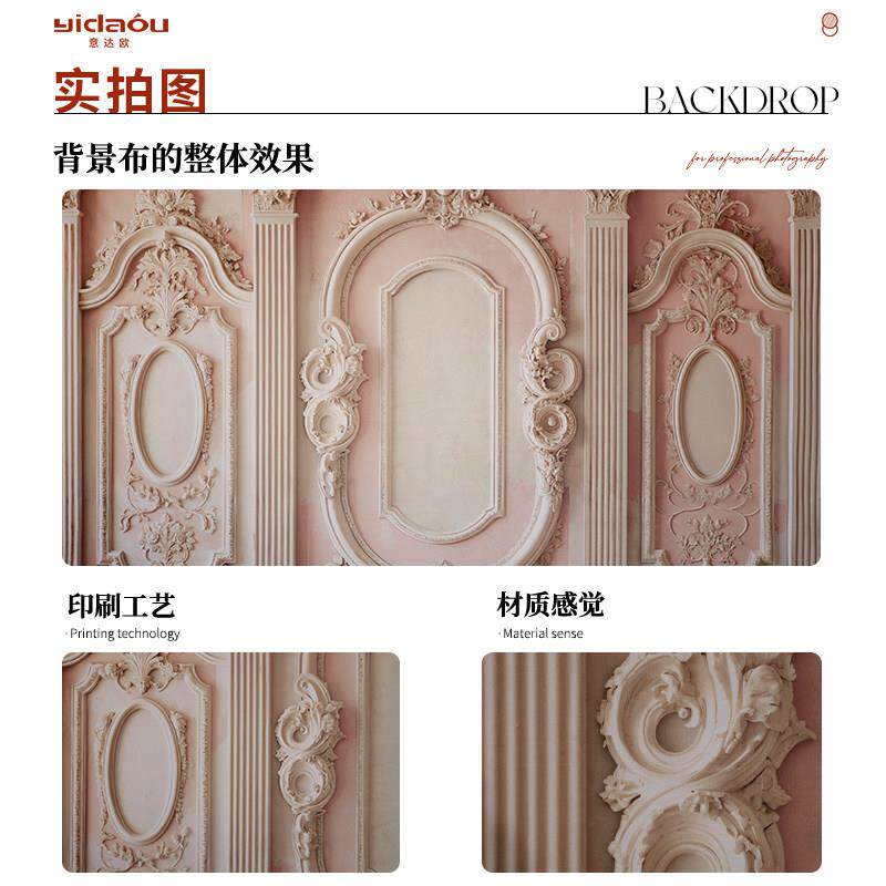 📚 意达欧yidaou专业摄影背景布潜粉色欧式浮雕墙壁3d彷真立体场景照