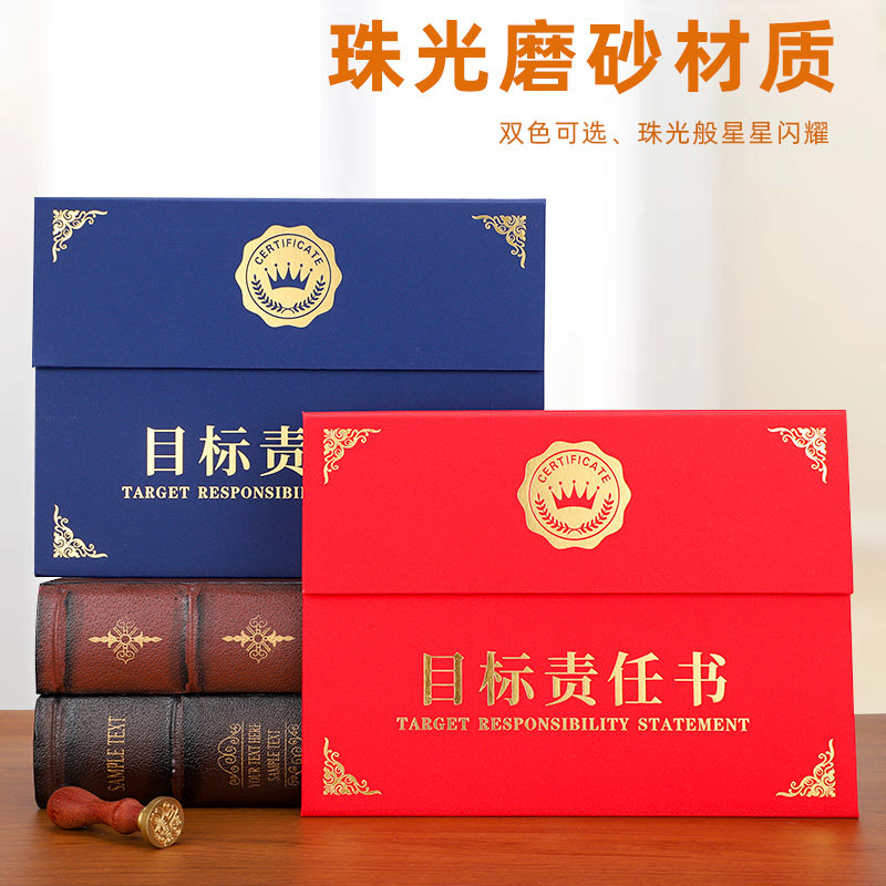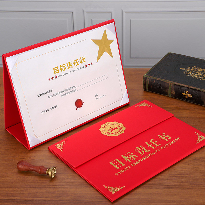 📚 新潮A4摆台证书外壳目标责任书房产公司员工销售业绩效管理激励任务挑战承诺军令状可定制企业LOGO打印内页纸