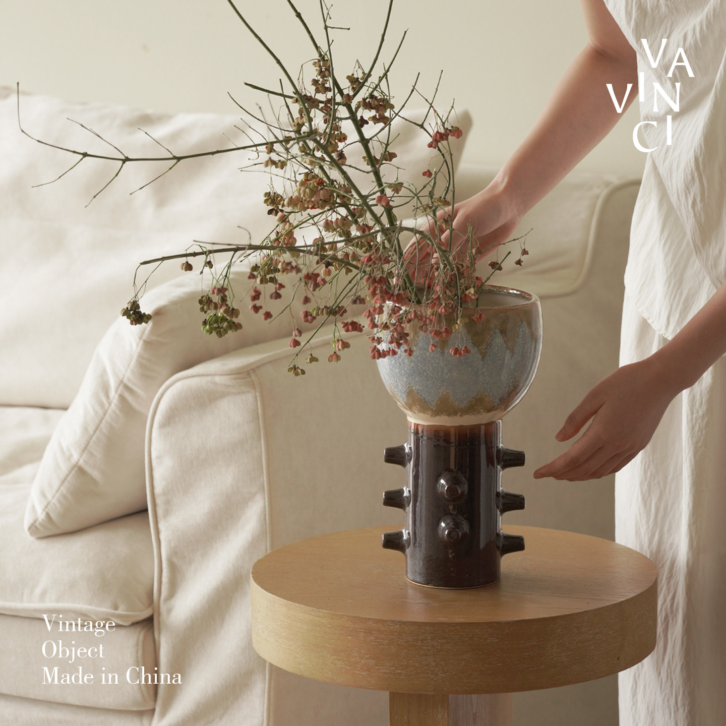 📚 梵其侘寂风色釉渐变手作陶瓷花瓶摆件民宿客厅创意餐桌装饰插花器