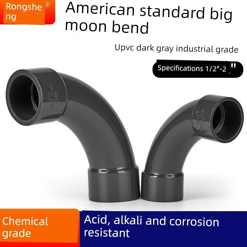 📚 戎生UPVC大月弯美标深灰大弧度PVC管90度弯头慢弯1寸塑料水管接头
