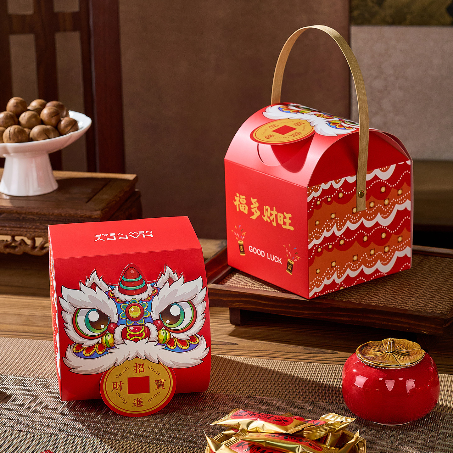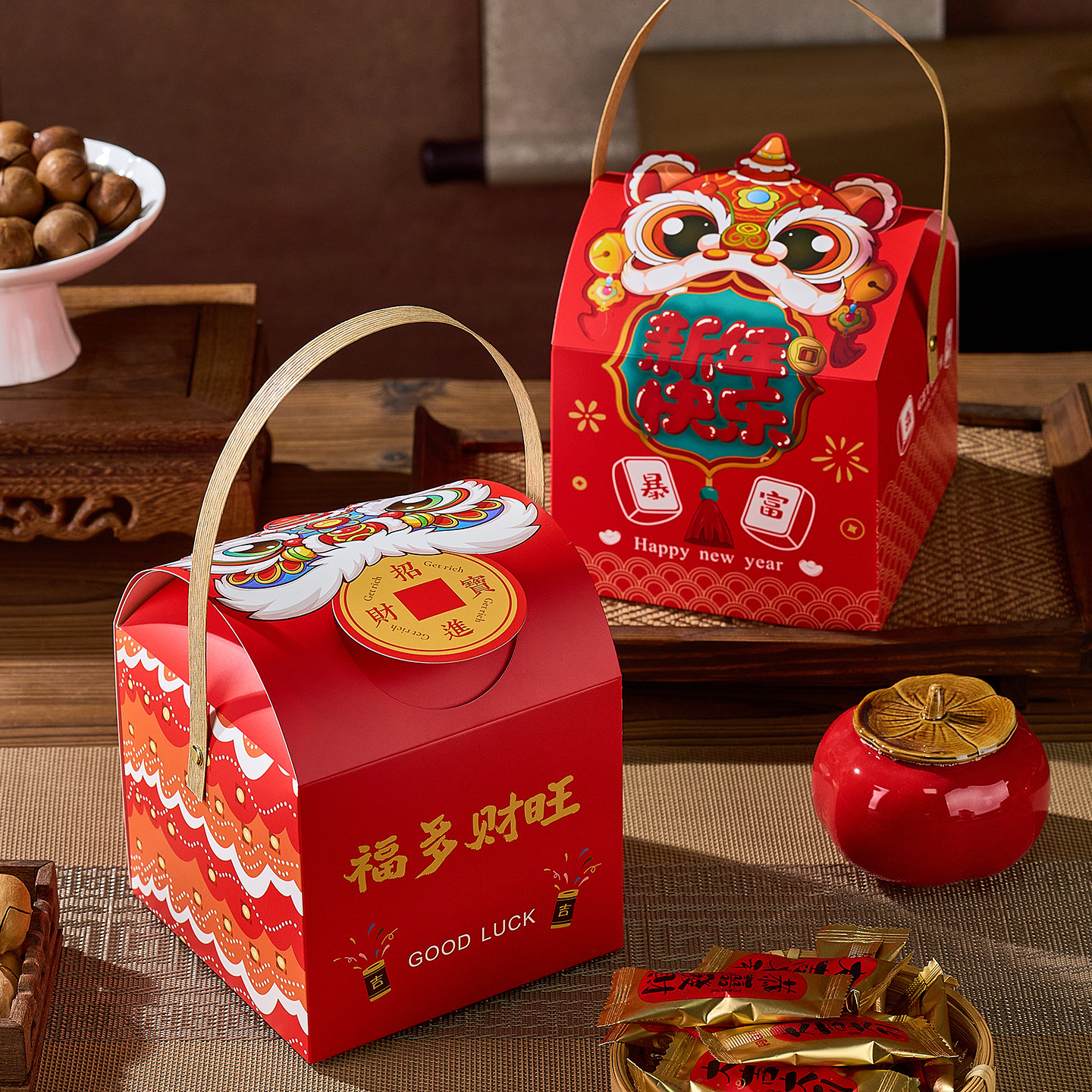 📚 2026马年单罐装新年手提盒空盒定制春节送礼包装甜品饼干糖果礼盒