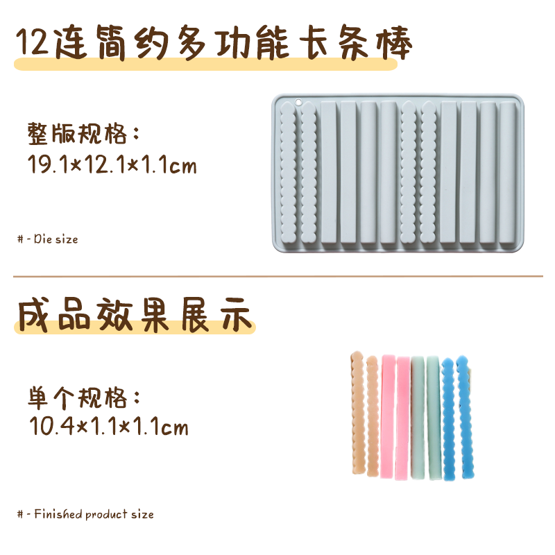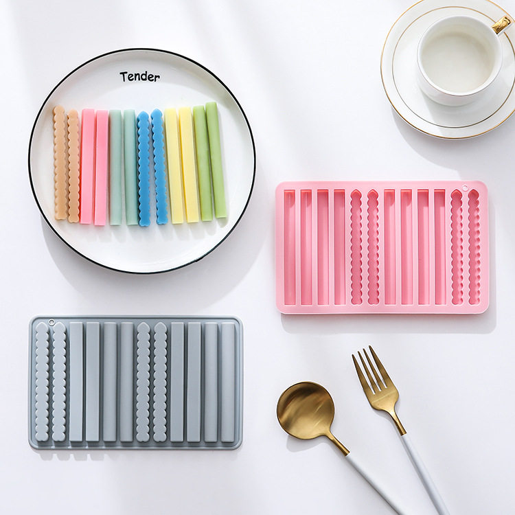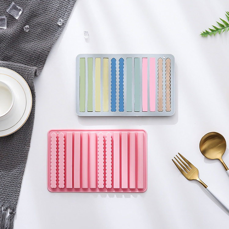 📚 12连3种长条形硅胶制冰格冰块diy巧克力朱古力饼干糖果奶酪棒模具