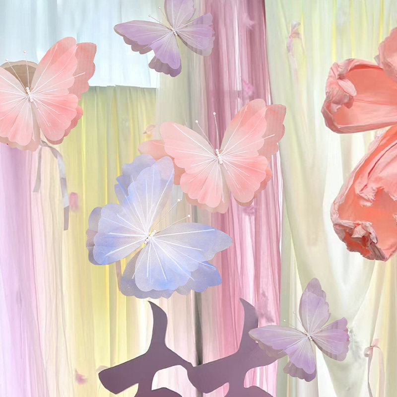 📚 新款莫奈花园布置纱网蝴蝶真丝蝴蝶丝网蝴蝶花艺橱窗道具纸艺蝴蝶