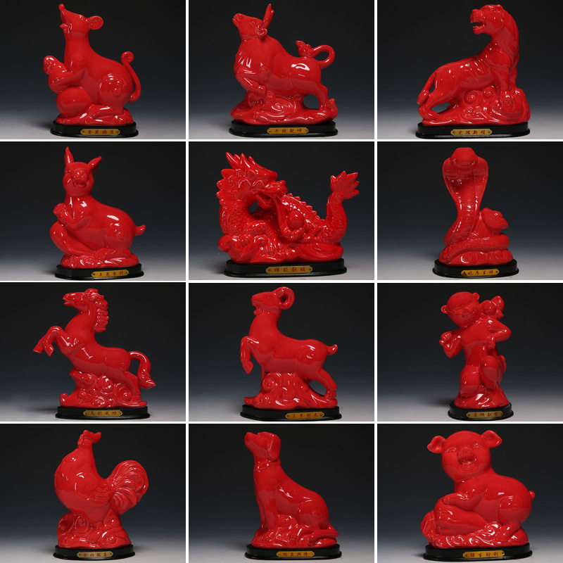 📚 陶瓷十二生肖摆件红色鼠牛虎兔龙蛇马羊猴鸡狗猪乔迁家装饰品属相