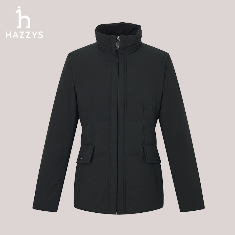 📚 Hazzys哈吉斯休闲羽绒服女士秋冬鸭绒收腰纯色时尚潮立领拉链外套