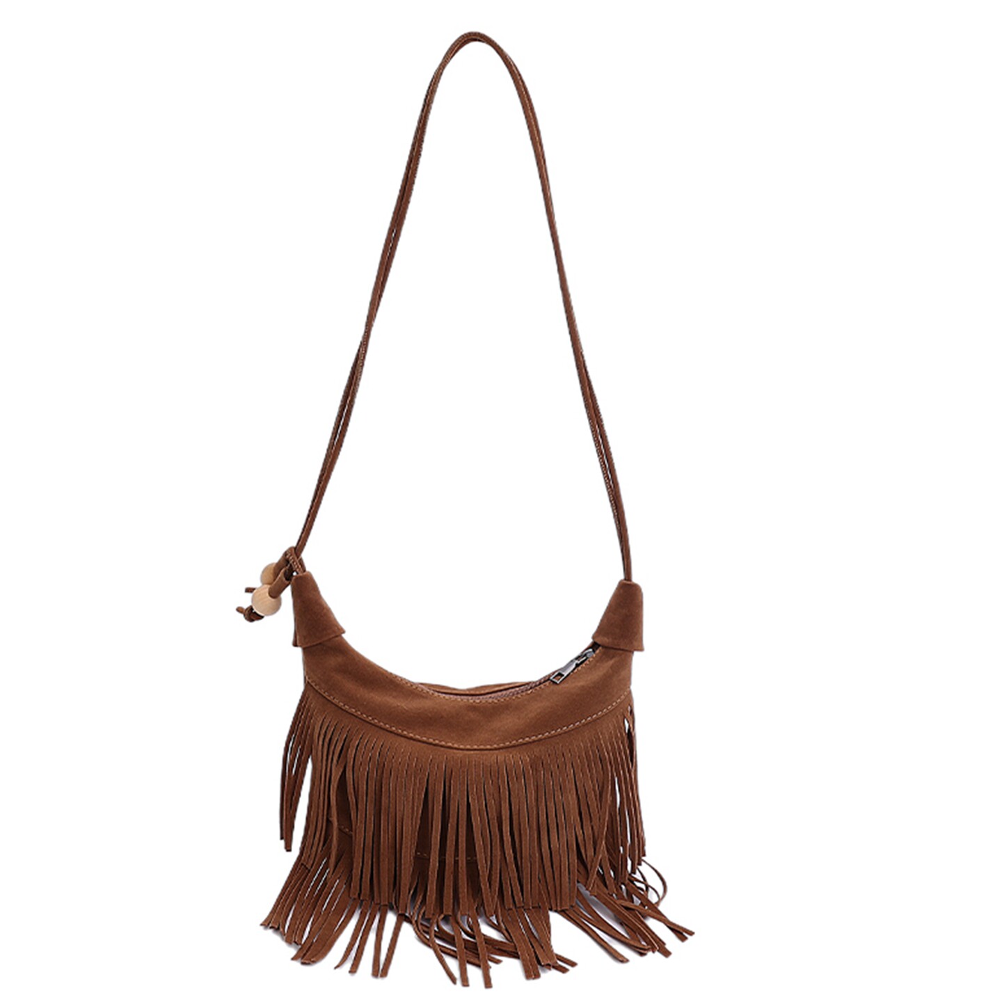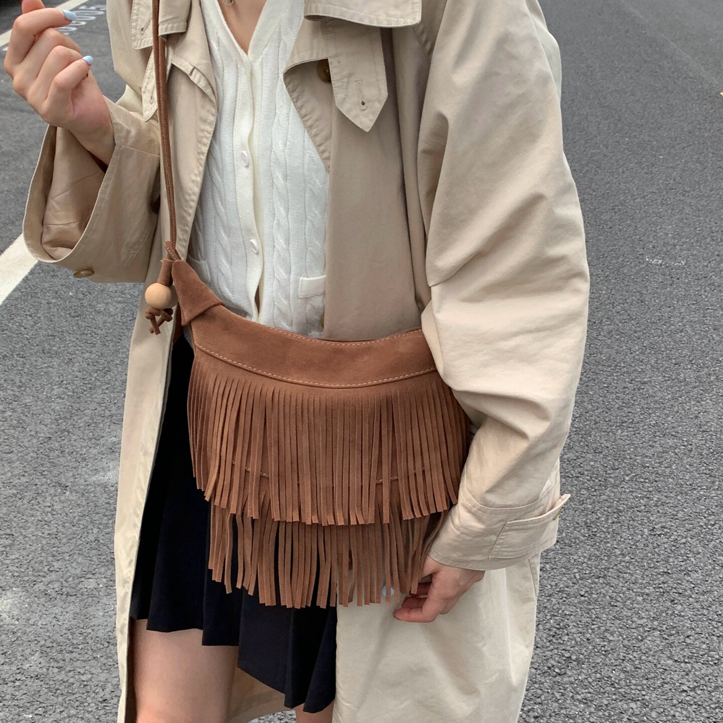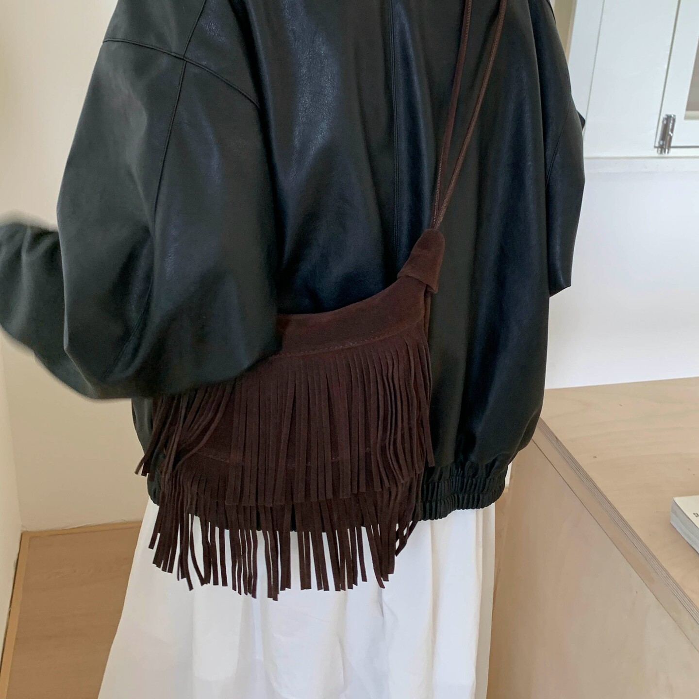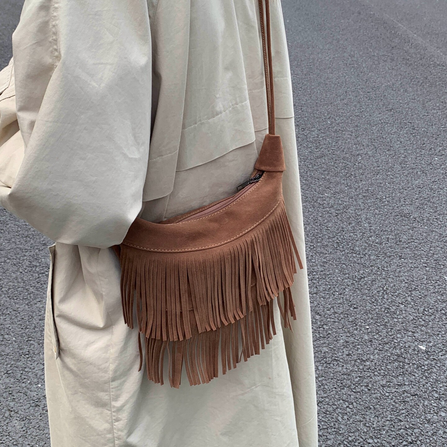 📚 美式复古麂皮绒流苏包包女2026新款秋冬休闲单肩包百搭斜挎饺子包