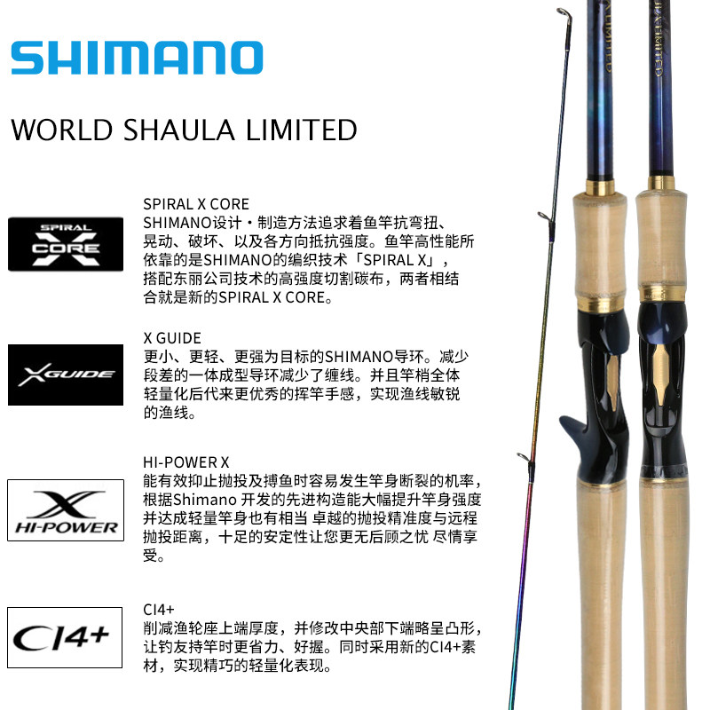 📚 SHIMANO禧玛诺WORLD SHAULA LIMITED 25沙湖拉彩虹杆远投路亚竿