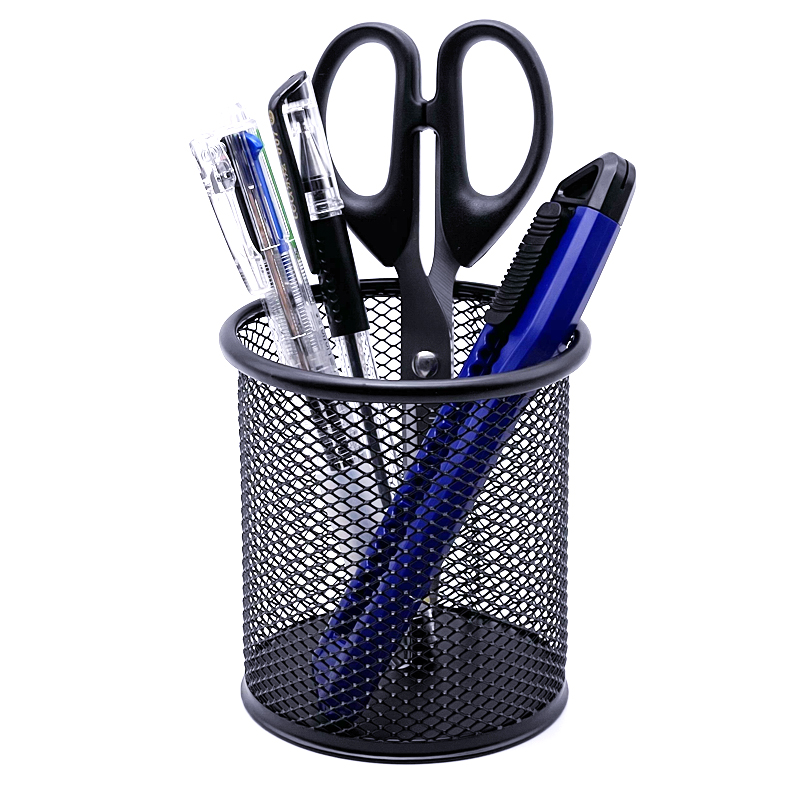 📚 笔筒圆形方形金属网格笔插笔类收纳简约网纹笔筒学生桌面创意笔盒