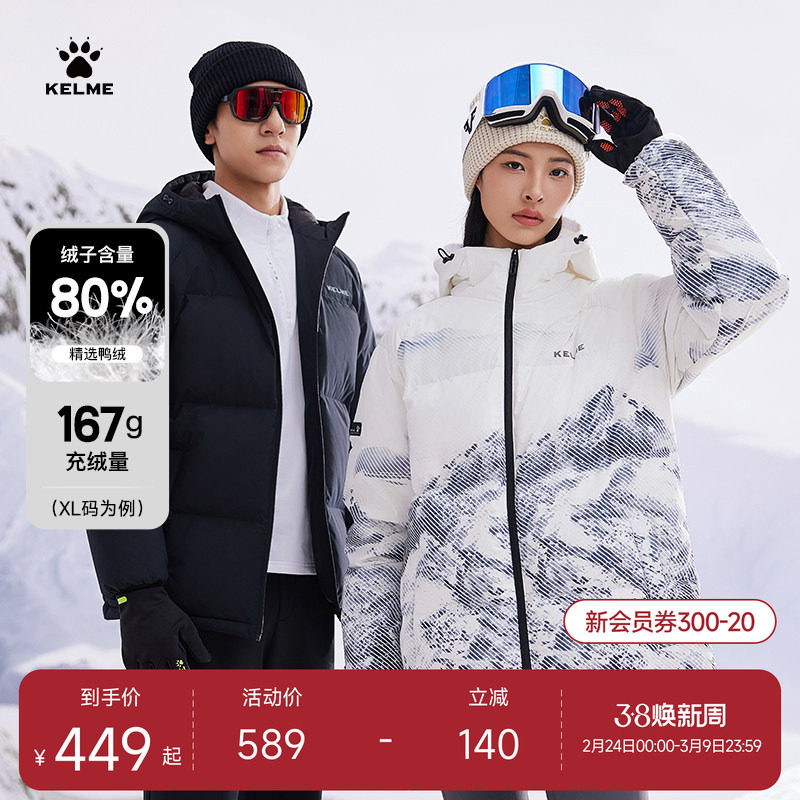 📚 KELME卡尔美羽绒服男女短款冬季运动服2025新款连帽保暖加厚外套