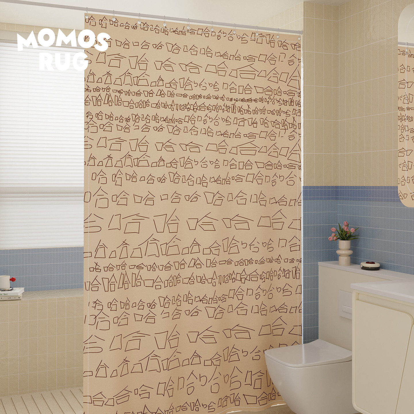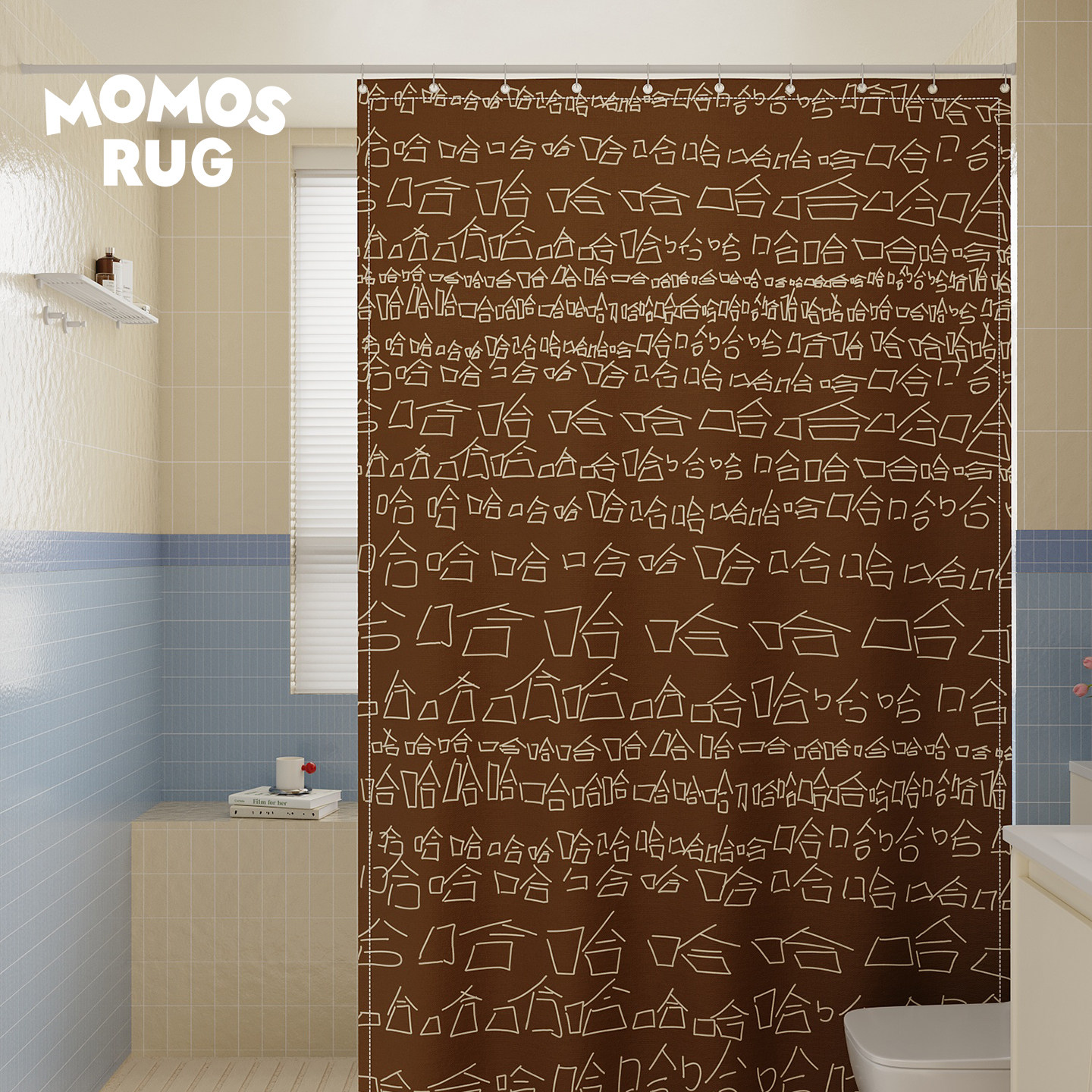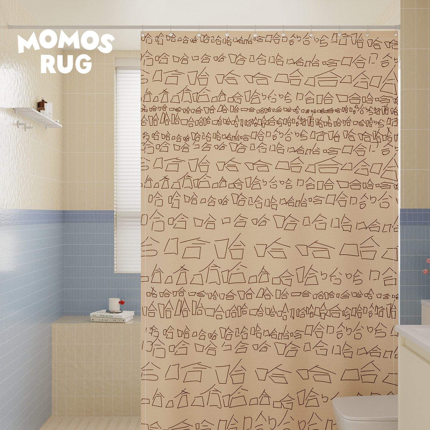 📚 笑里藏刀浴帘简约卡通多巴胺防水卫生间隔断挂帘淋浴间免打孔门帘