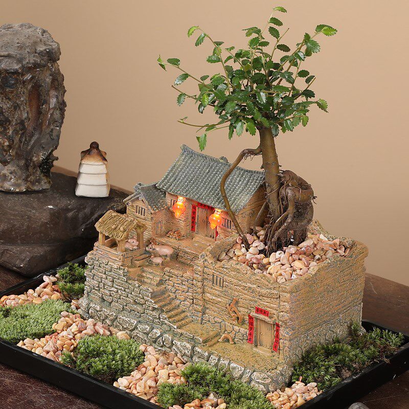📚 老房子模型农家小院创意摆件盆景客厅办公室装饰品桌面Z微景观造