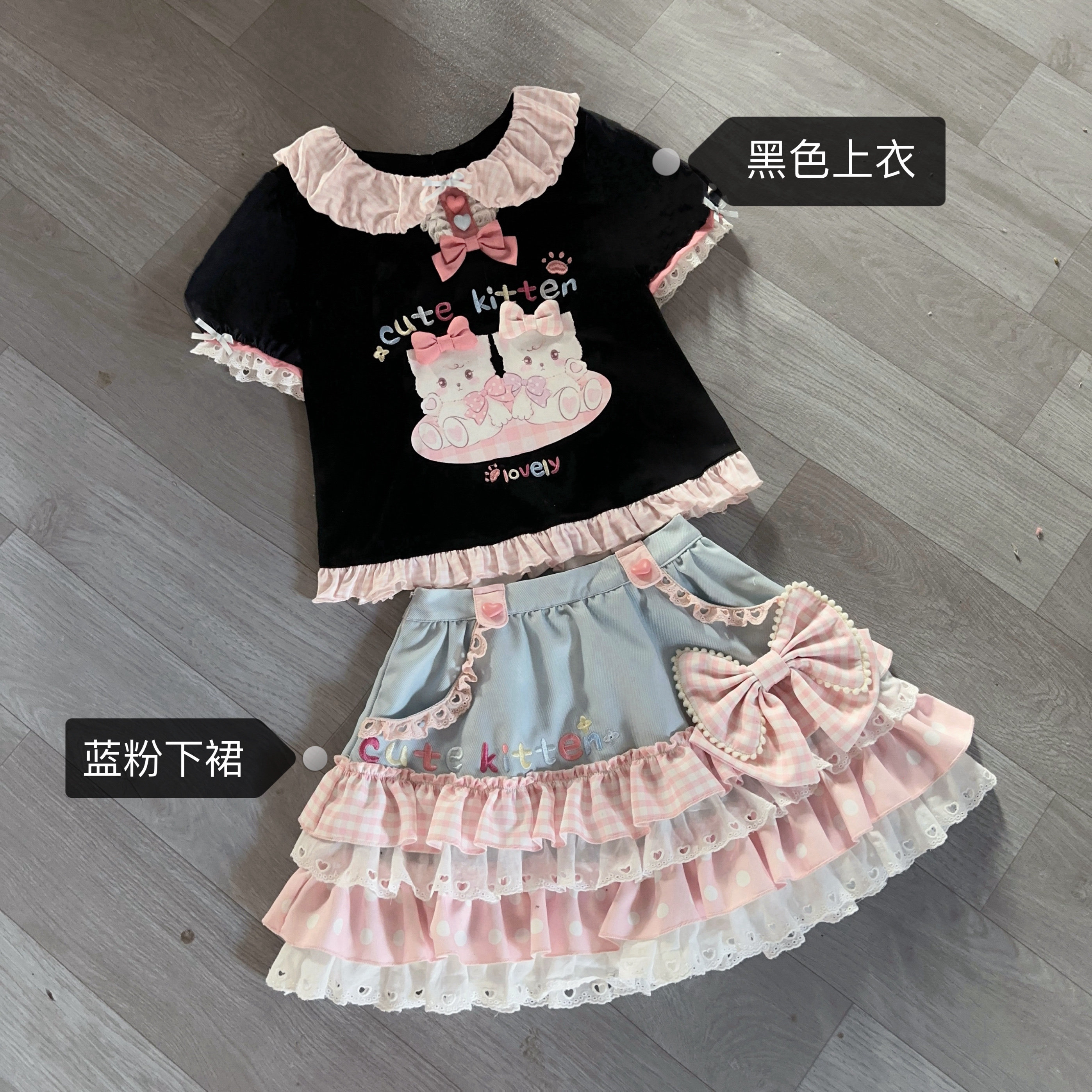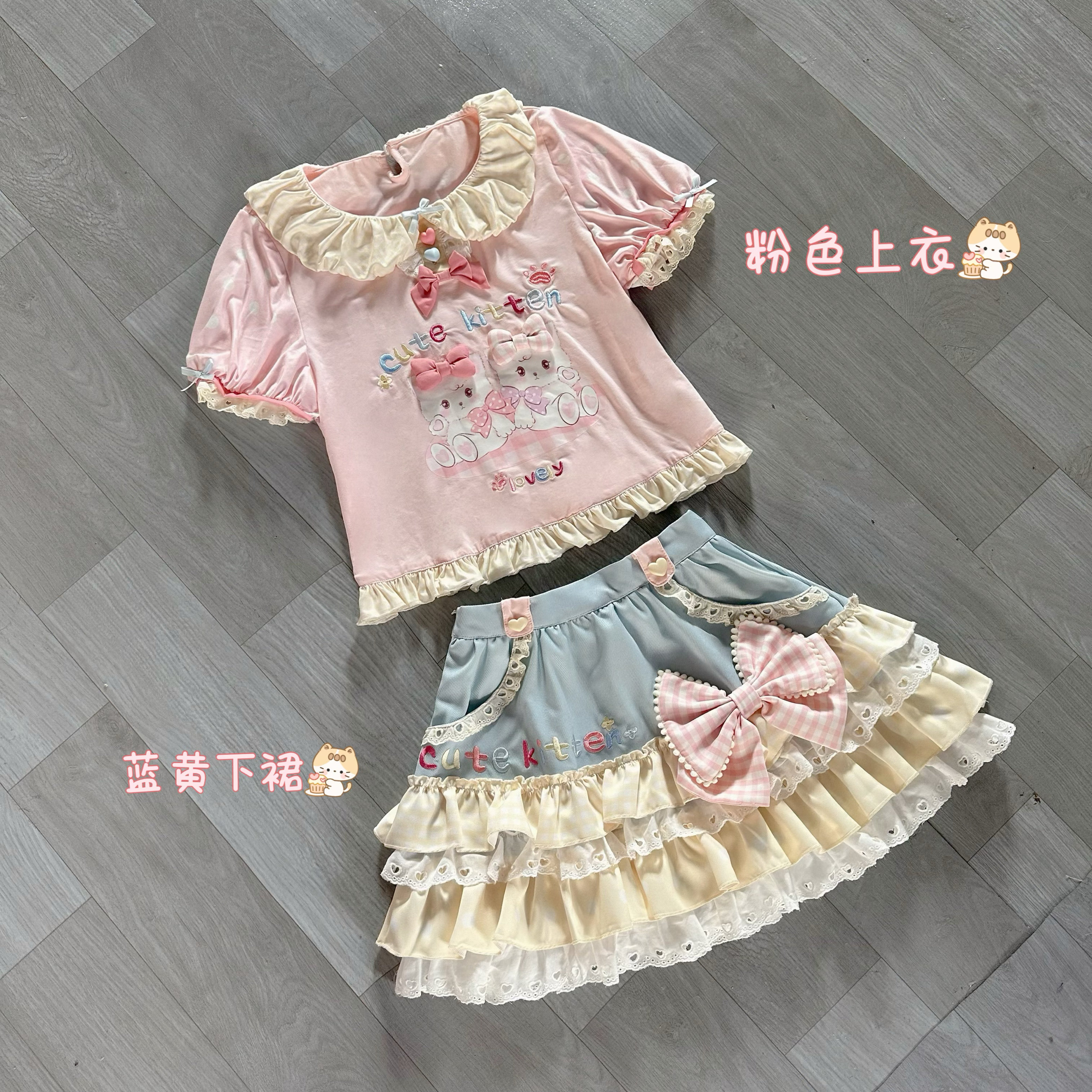 📚 现货-双子喵喵-原创小个子软妹纯棉t恤可爱甜美蛋糕裙