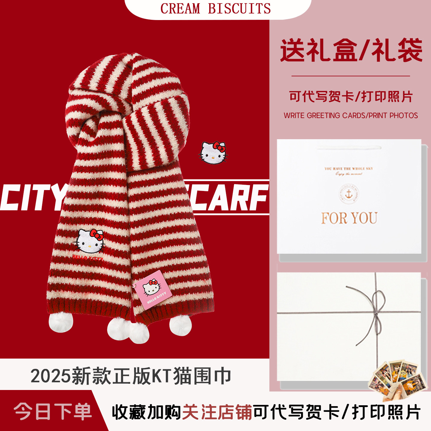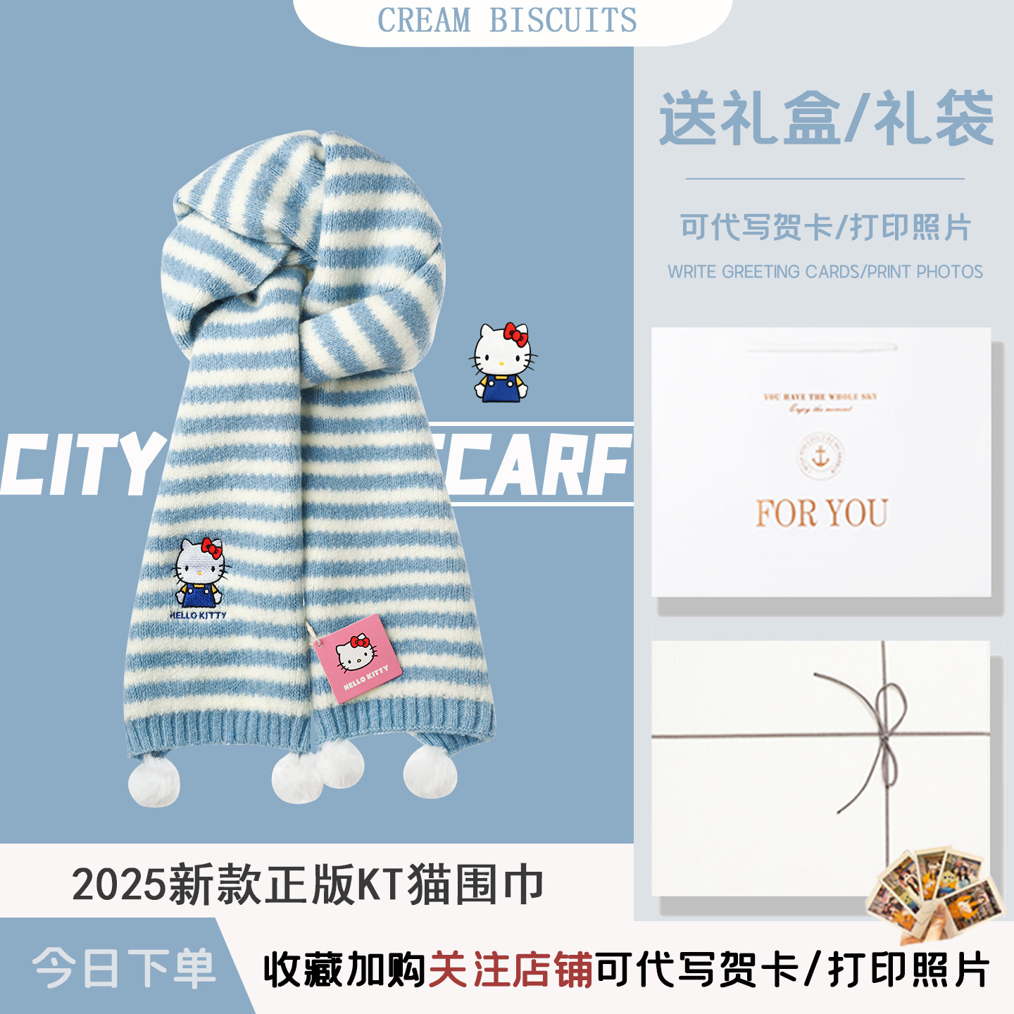 #正版HelloKitty #毛球条纹针织围巾 #冬新品围脖礼盒 #新年礼物 #券后价59.8
