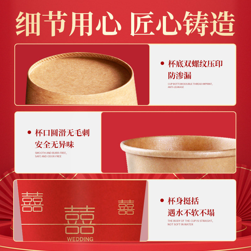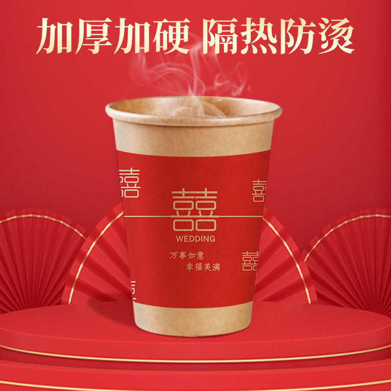 📚 结婚牛卡纸杯特厚加硬一次性杯子250ml隔热防烫婚宴待客喜杯婚庆