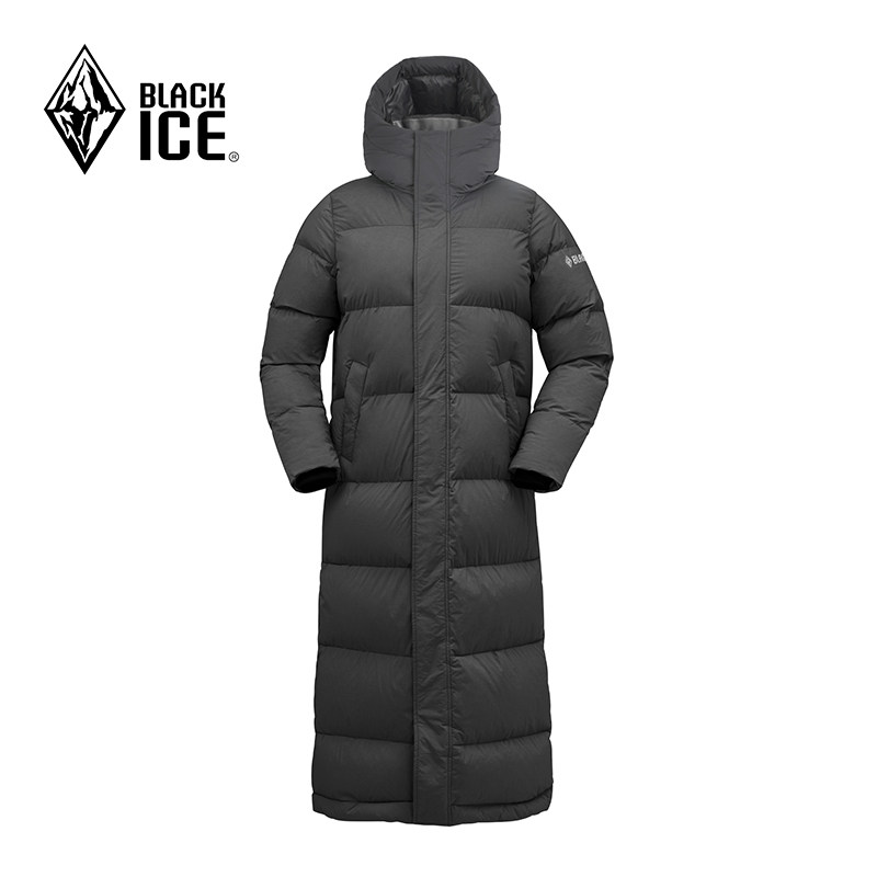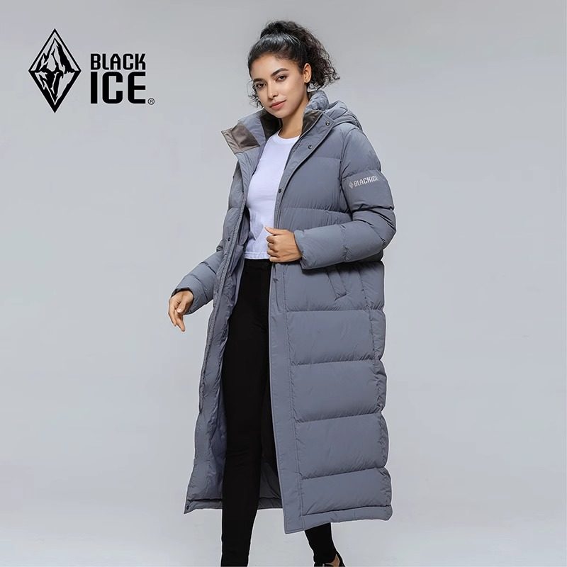 📚 新品黑冰700蓬连帽保暖羽绒服女款冬季过膝加长鹅绒大衣8569