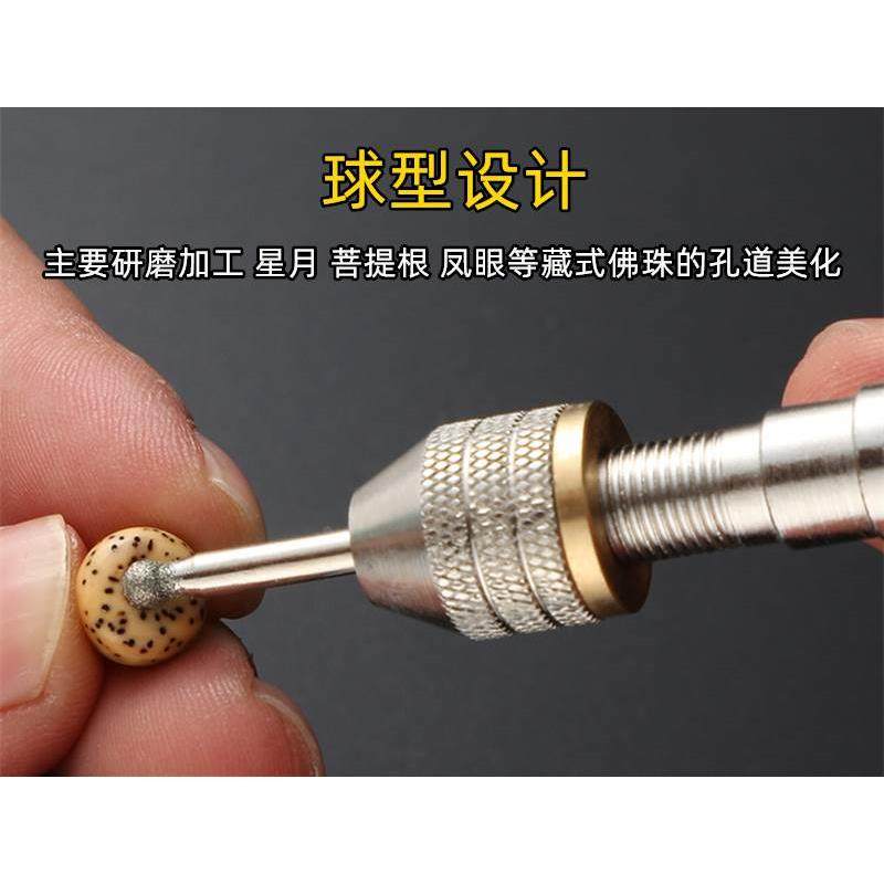 📚 文玩藏式星月金刚菩提蜜蜡精修喇叭口孔道倒角金刚砂球形磨头工具