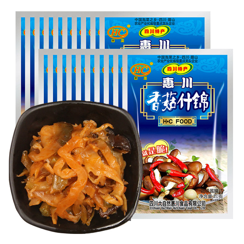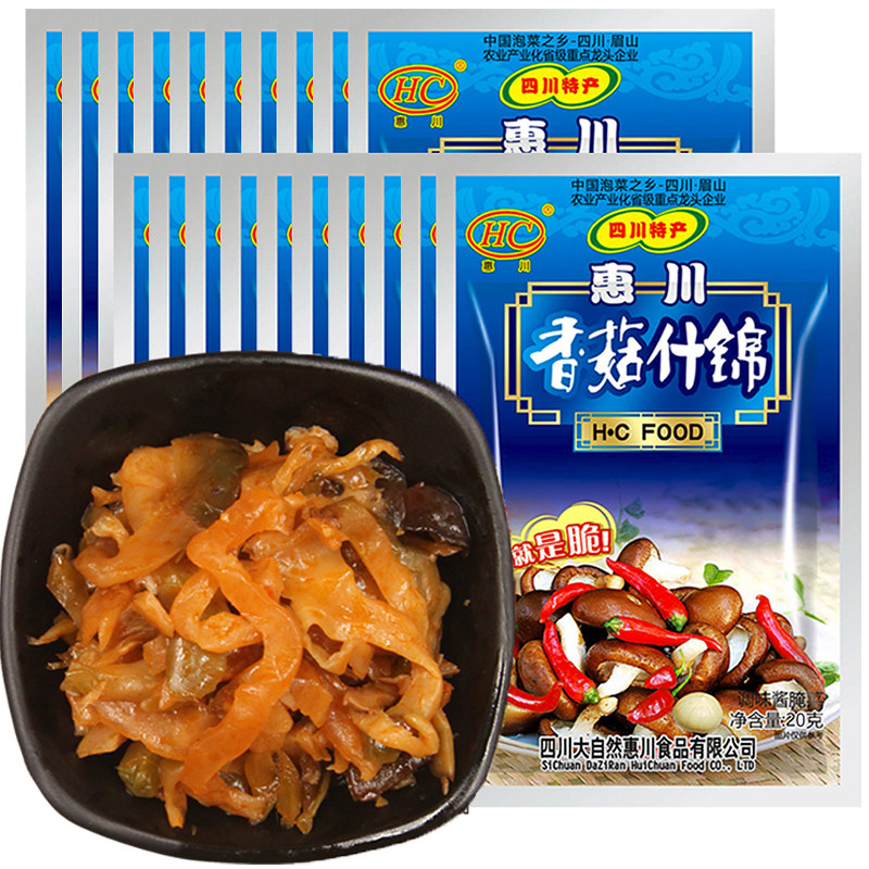 📚 惠川香菇什锦榨菜开味下饭菜麻辣学生小包早餐稀饭咸菜20g*20袋装