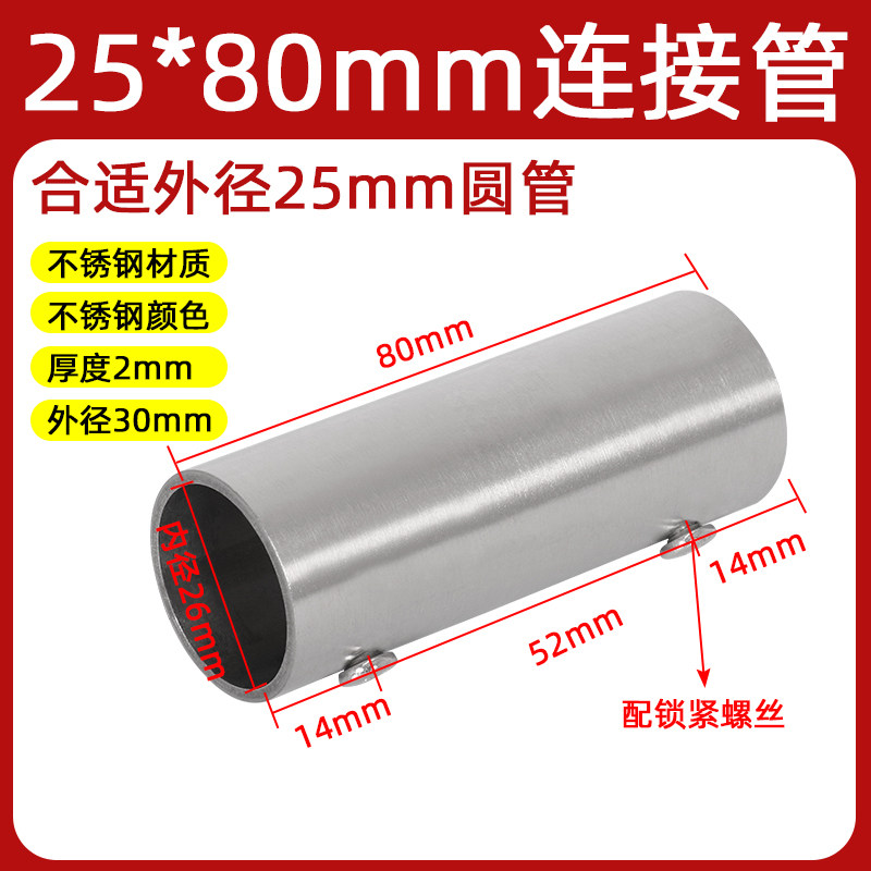 📚 直径25mm/32mm加厚不锈钢连接管管材连接件配件/50水管圆管连接头