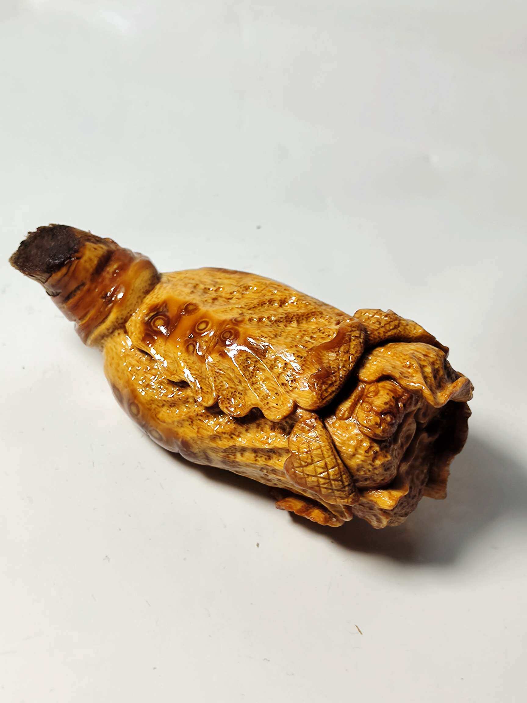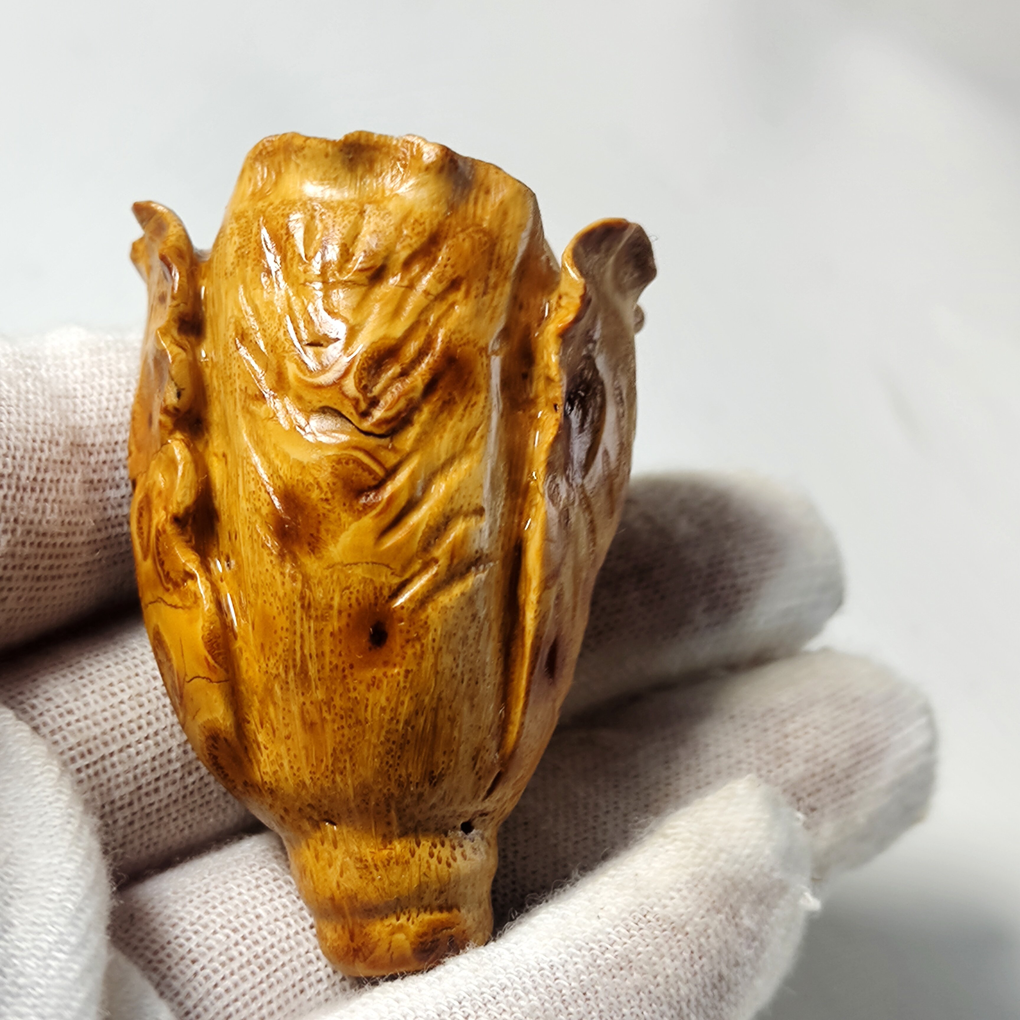 📚 精品竹根雕白菜(百财)手把件实心雕刻招财车内装饰品摆件