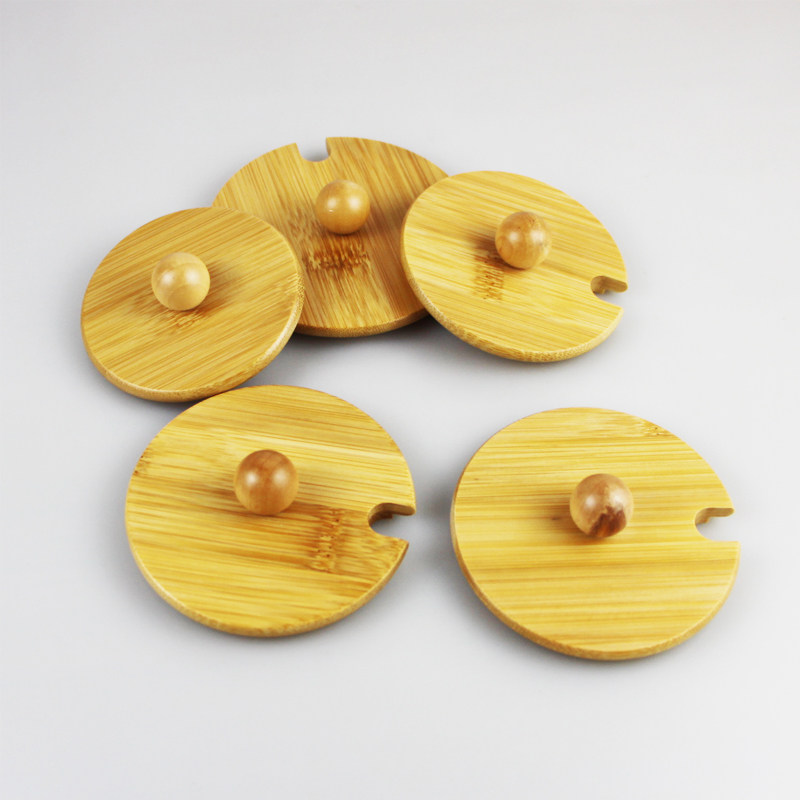 📚 圆形带提手马克杯盖 水杯盖子木质杯盖竹盖子 防尘茶杯盖免费刻字