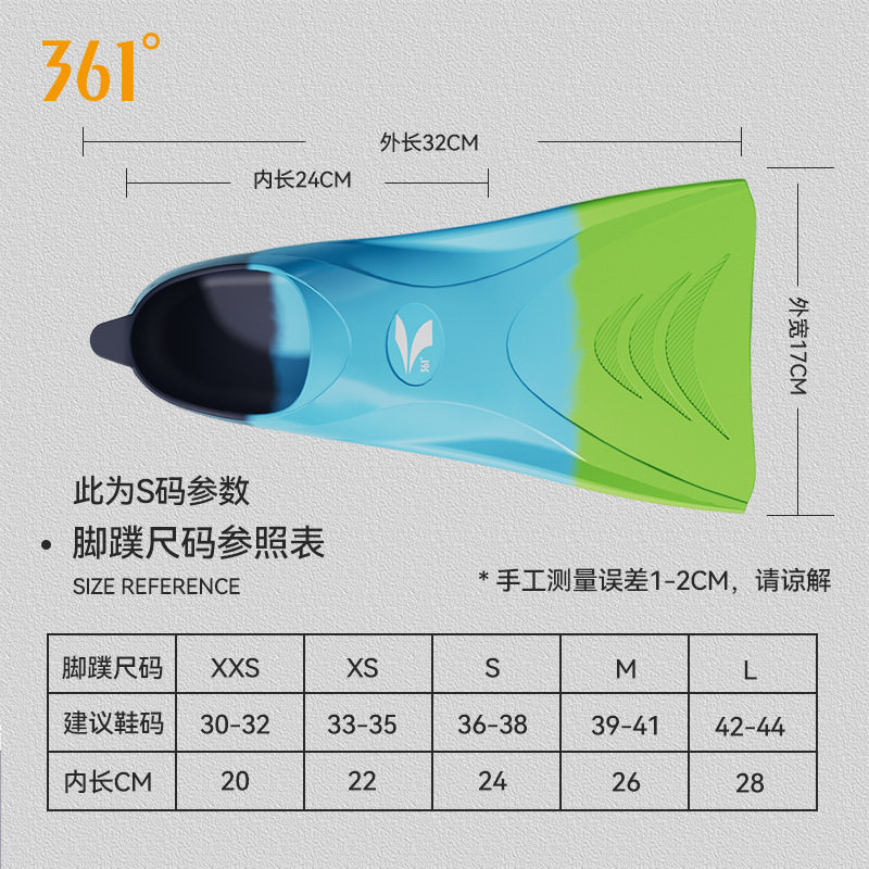 📚 361游泳脚蹼专用儿童成人专业训练装备橡胶蛙鞋自由泳潜水短脚蹼