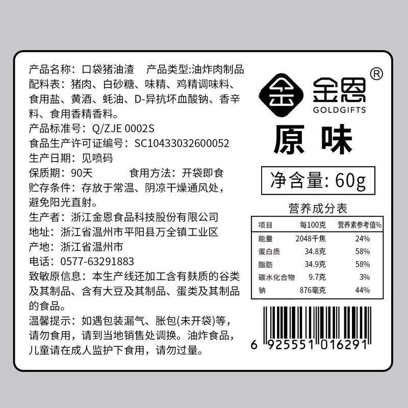 📚 金恩新款口袋油渣五花肉粕香酥软猪油渣油渣温州特产休闲零食