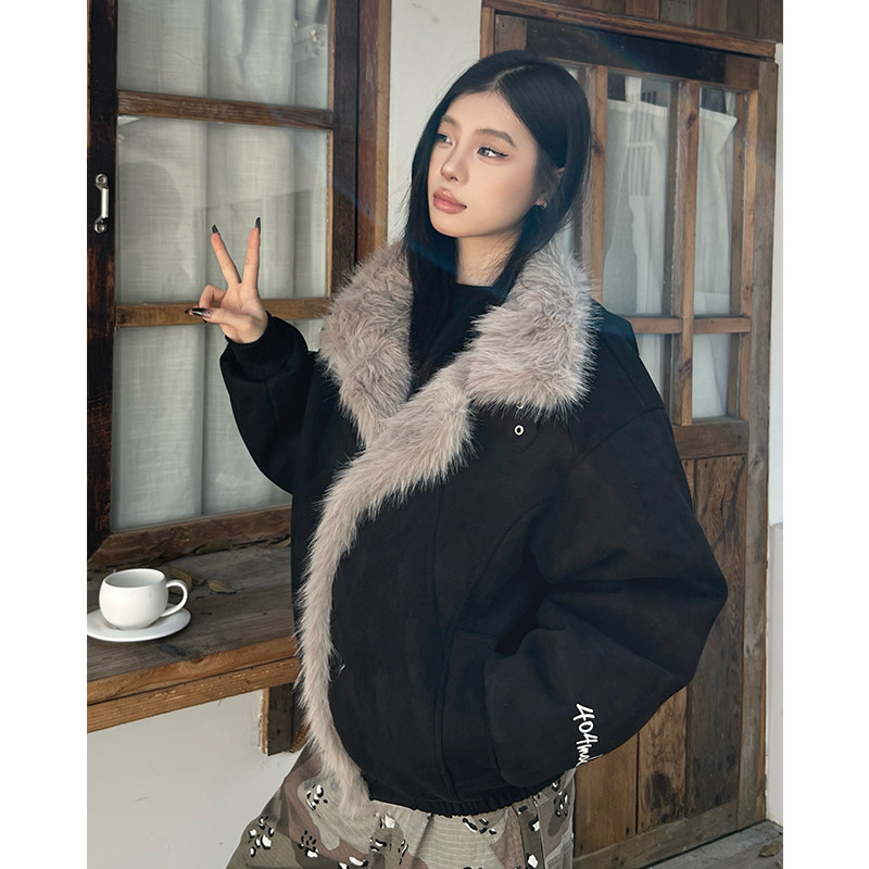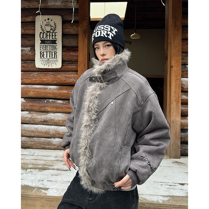 📚 404MOB重磅保暖麂皮座山雕棉服外套秋冬保暖毛领棉袄情侣百搭棉衣