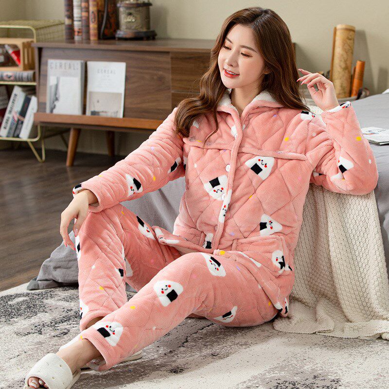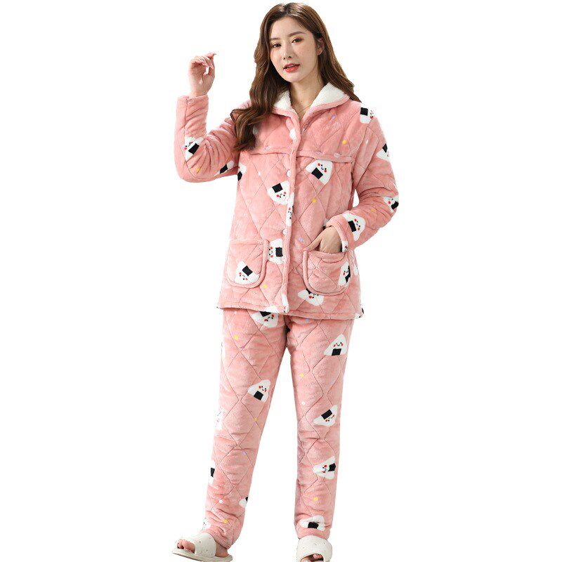 📚 三层夹棉孕妇睡衣女秋冬季大码加厚加绒月子服产后哺乳产妇怀孕期