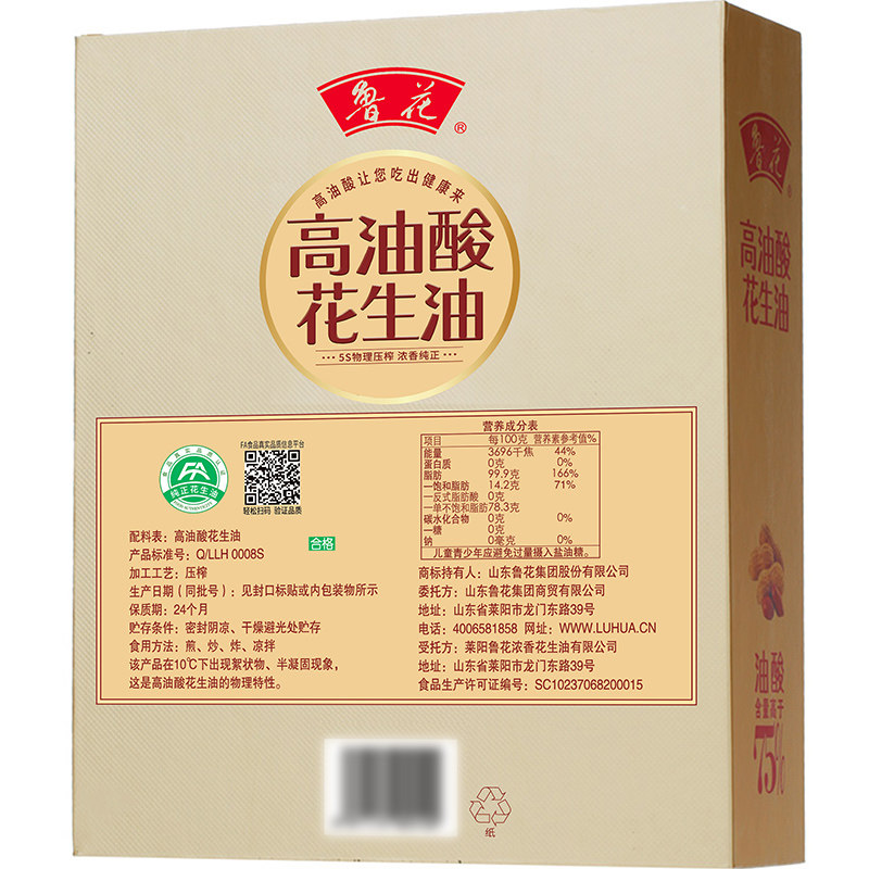 📚 【鲁花直销】鲁花高油酸花生油简装礼盒750ml*2 物理压榨煎炒烹炸