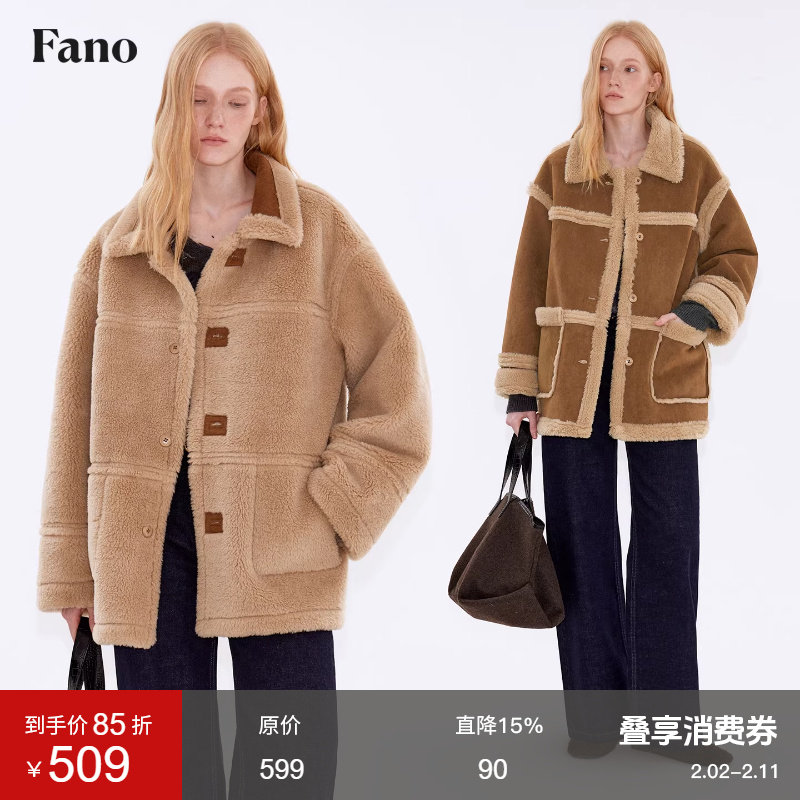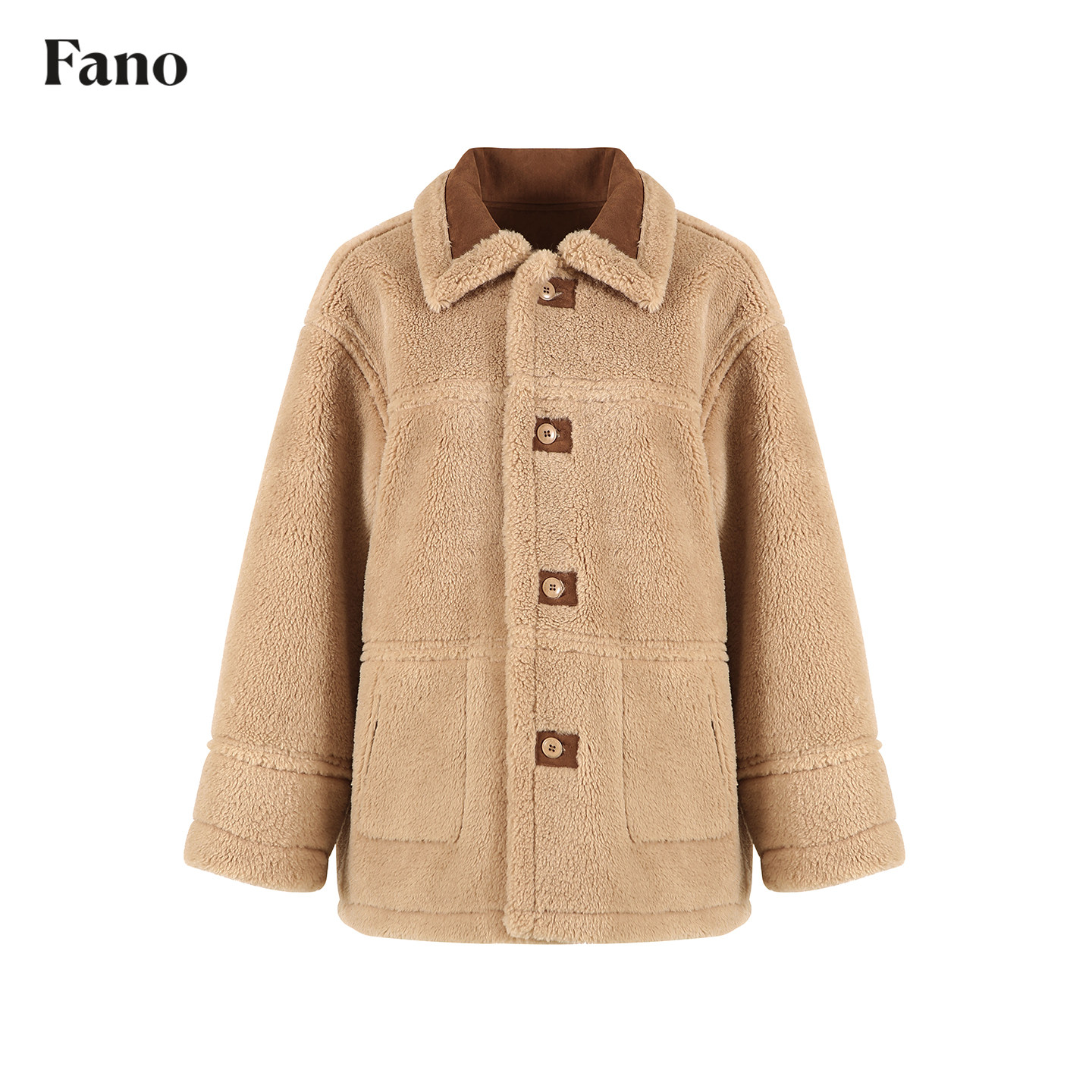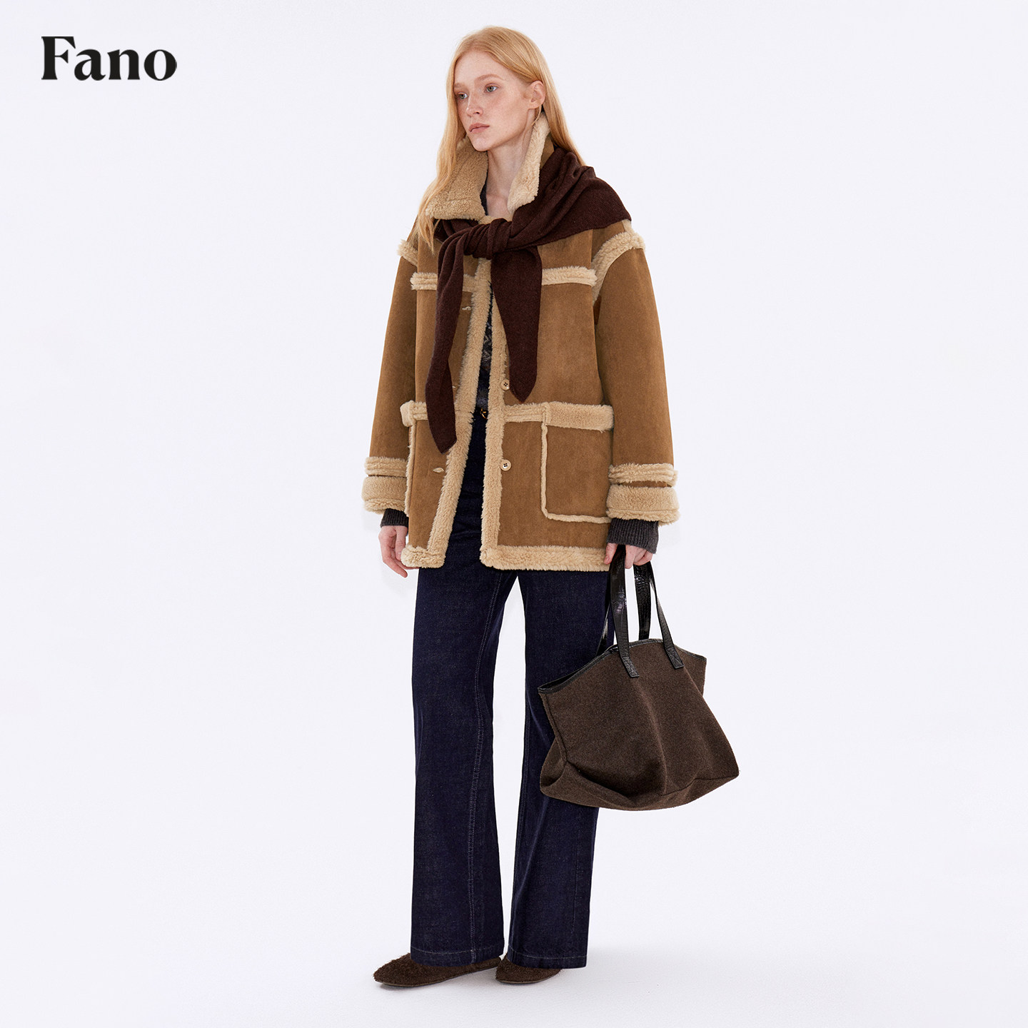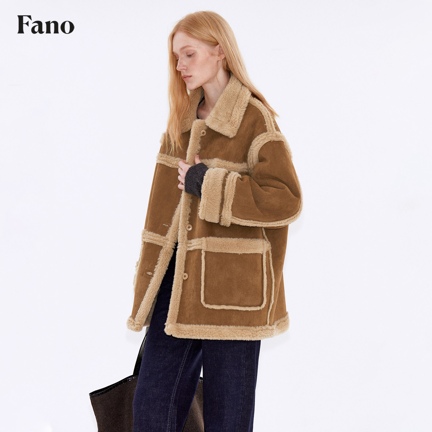 📚 范洛Fano 软糯糯正反两面穿撞色皮毛一体复合面料休闲外套女2025
