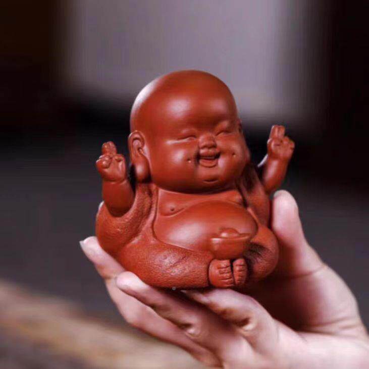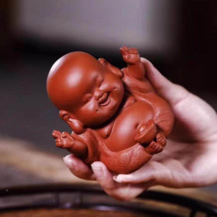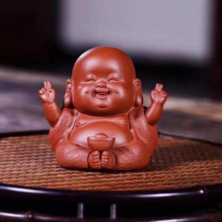 📚 茶工厂直供笑宜兴OBB紫砂供口常开开心佛茶宠摆件具茶盘摆创意茶