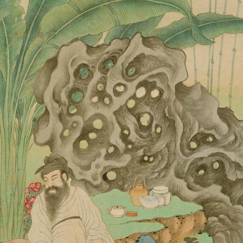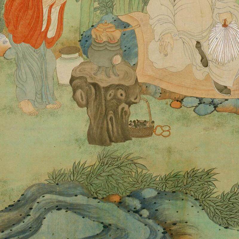 📚 明丁云鹏玉川煮茶图文人山水画微喷仿古复制品中式名画装饰画挂画