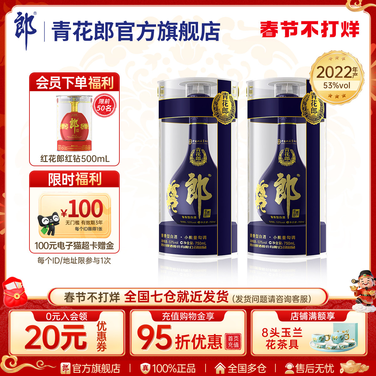 📚 郎酒【2022年产】青花郎53度酱香型白酒 750mL*2瓶官方旗舰店正品