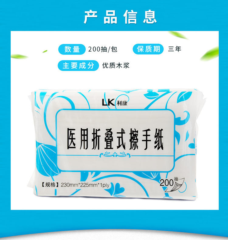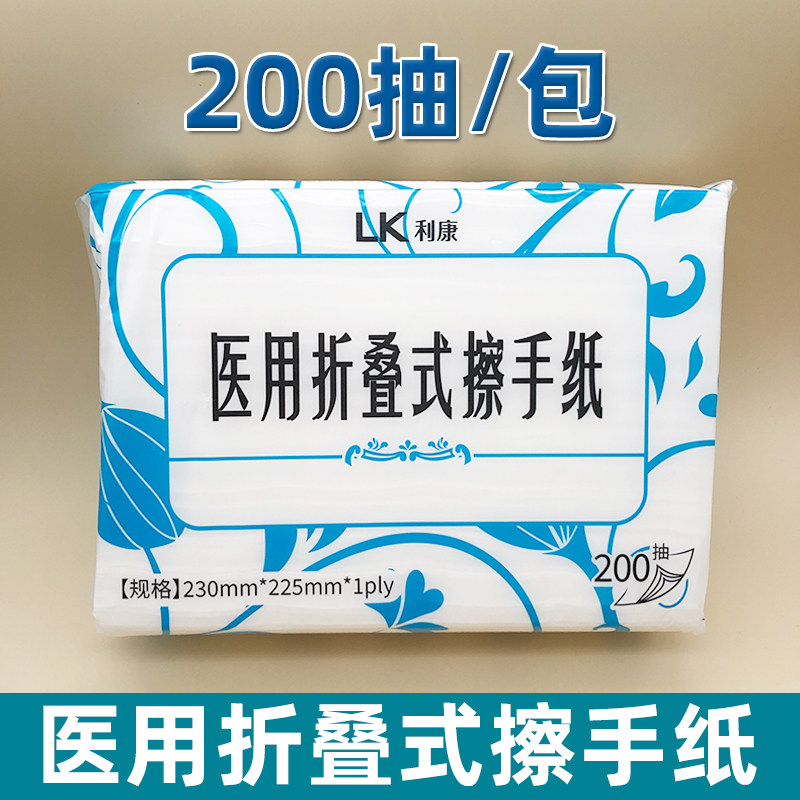 📚 利康医用折叠式擦手纸医院用抽取式面巾纸200抽腹透家用无尘干手