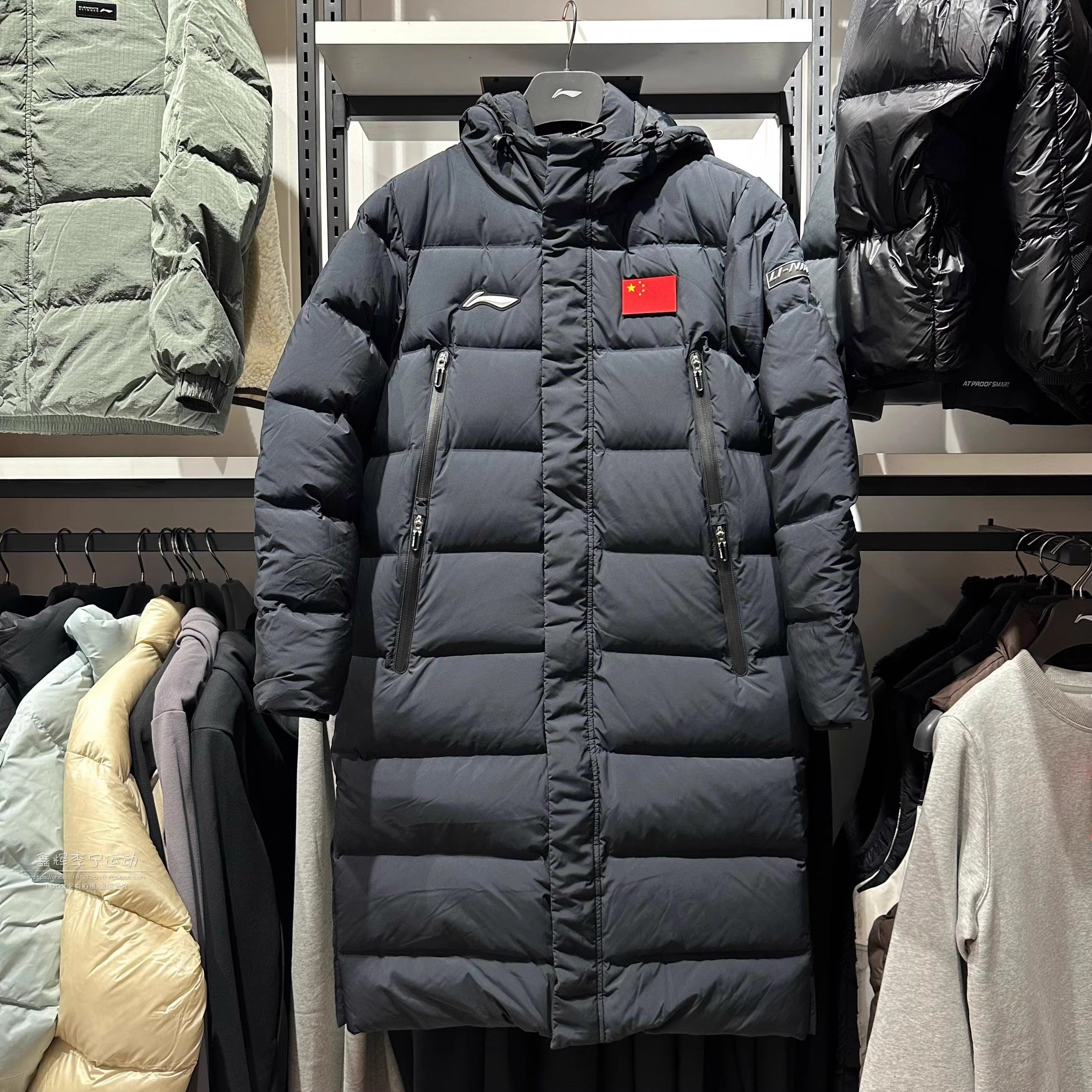 📚 李宁羽绒服男款女款2025秋冬季国旗标长版连帽外套过膝保暖运动服