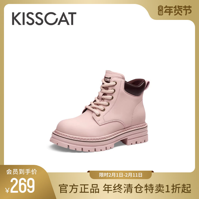 📚 KISSCAT接吻猫大黄靴秋季新款户外美拉德工装靴时尚气质马丁靴女